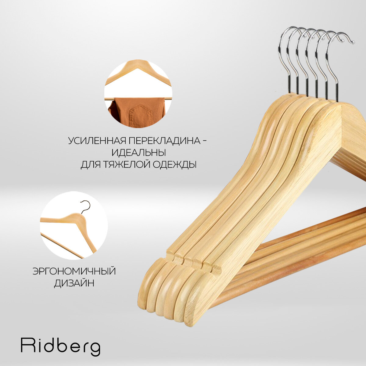 Вешалка-плечики для одежды деревянные Ridberg Wood 20 шт. (Brown) интересное: