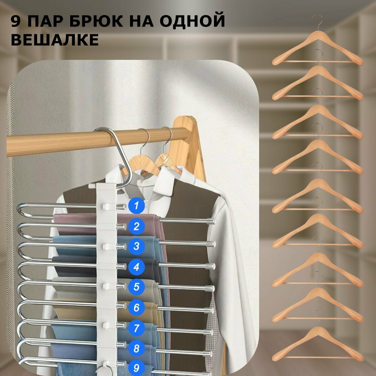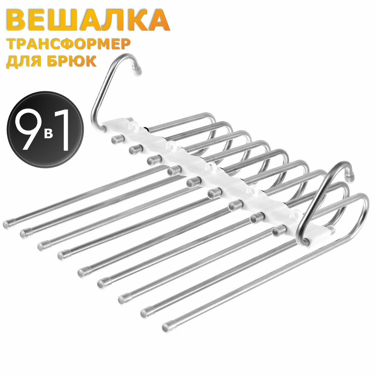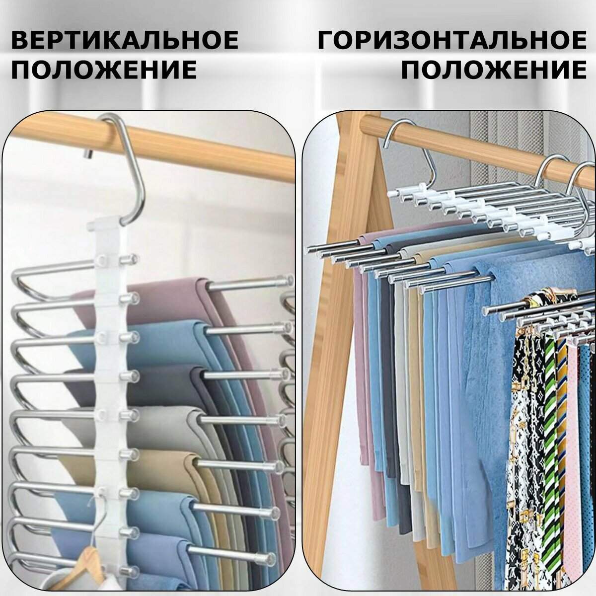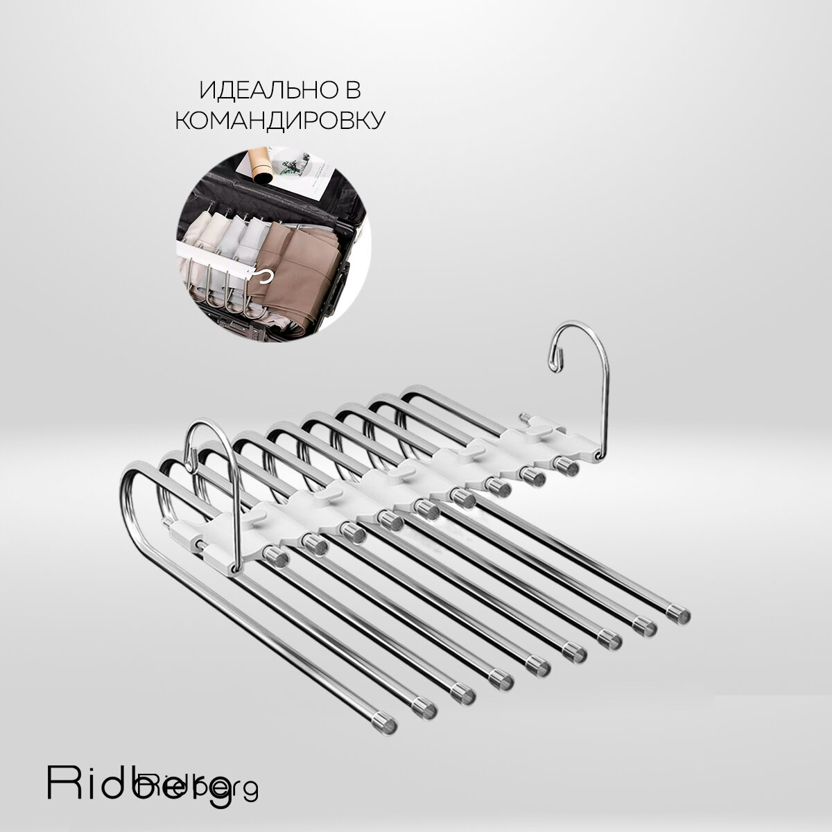 Вешалка трансформер для брюк и юбок Ridberg складная многоуровневая 9 креплений, для платков, для шарфов, белый интересное: