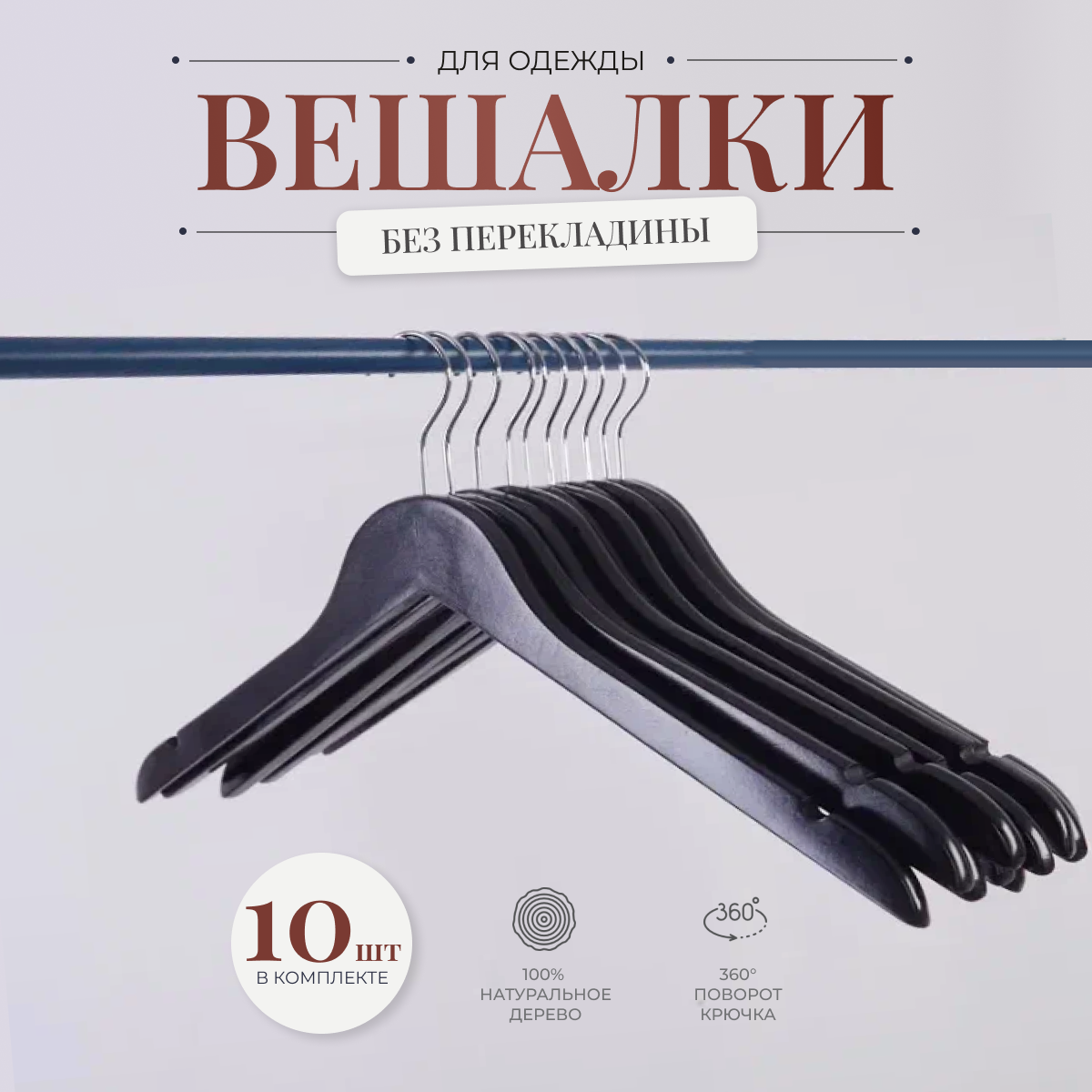 Вешалки для одежды 44cм деревянные, плечики без перекладины, цвет черный, комплект 10шт интересное: