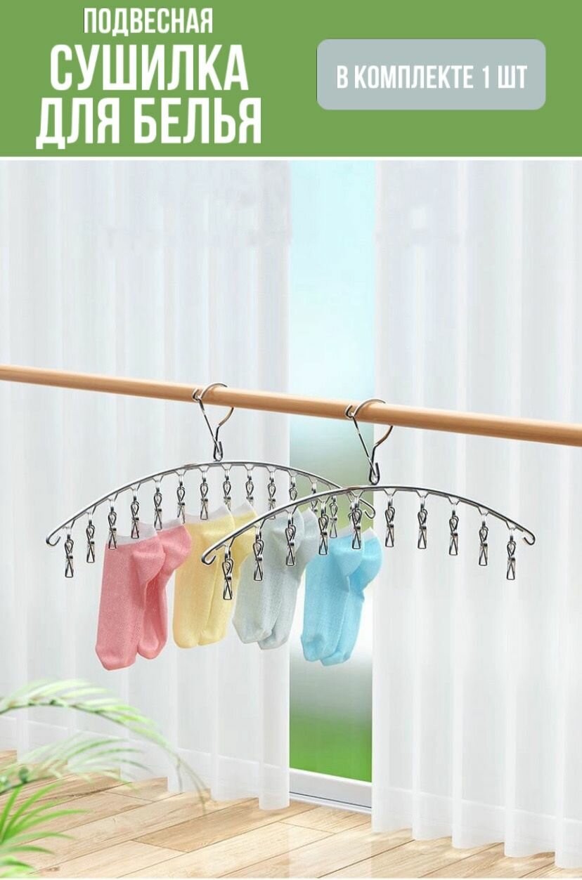 Сушилка для белья навесная Сушилка-вешалка с зажимами для носков Вешалка с прищепками 1 шт интересное: