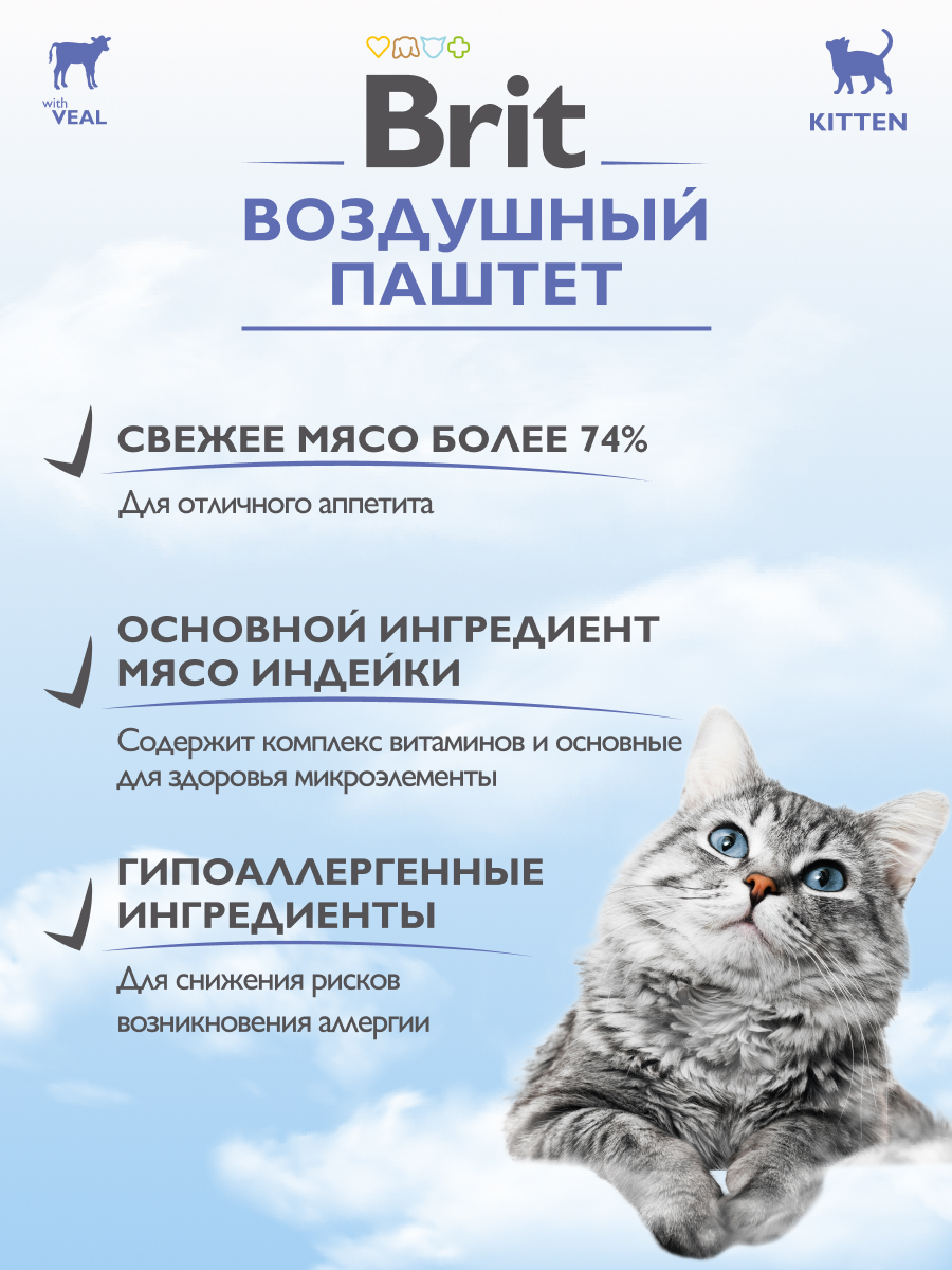 Влажный корм для котят Brit Воздушный паштет с телятиной 6 шт х 100 г