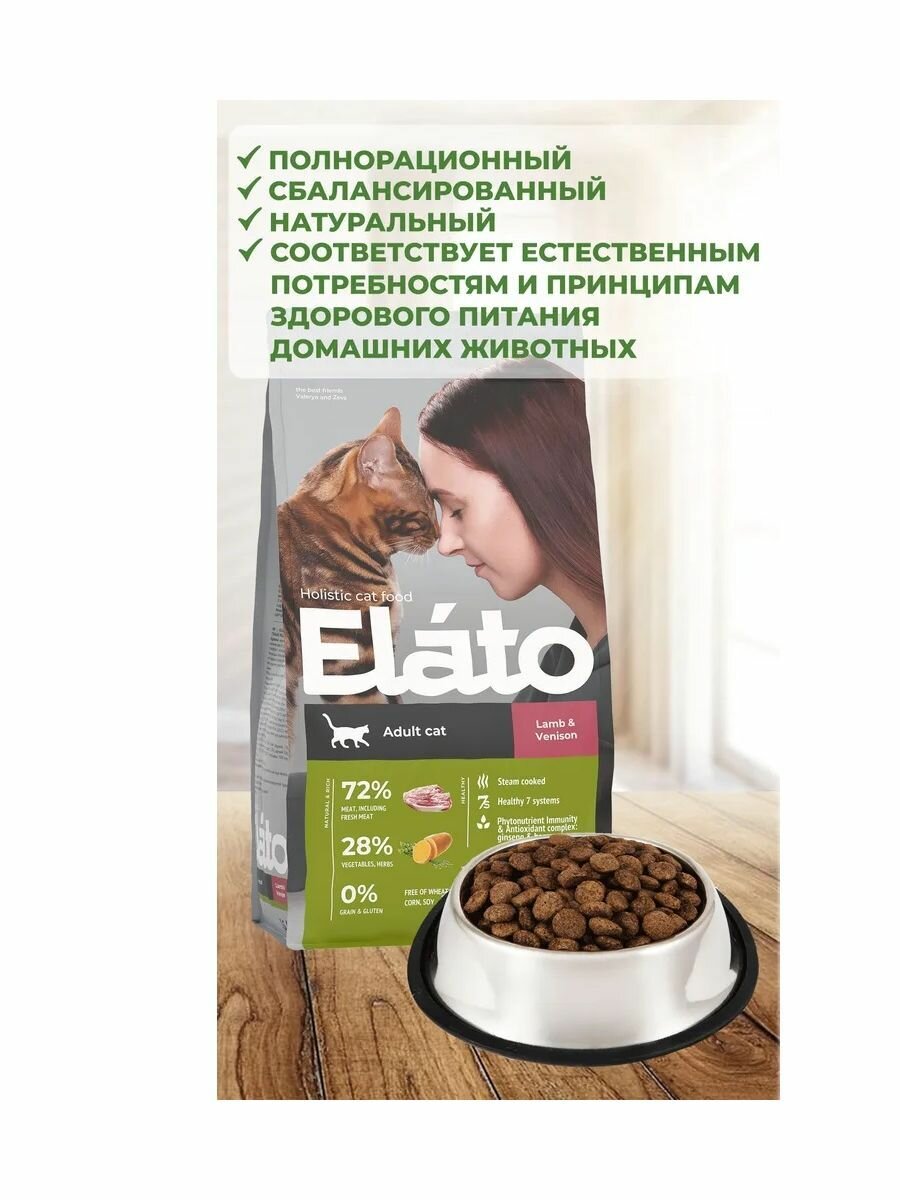Купить Корм сухой Elato для взрослых кошек Holistic с ягненком и олениной, полнорационный, 300 гр