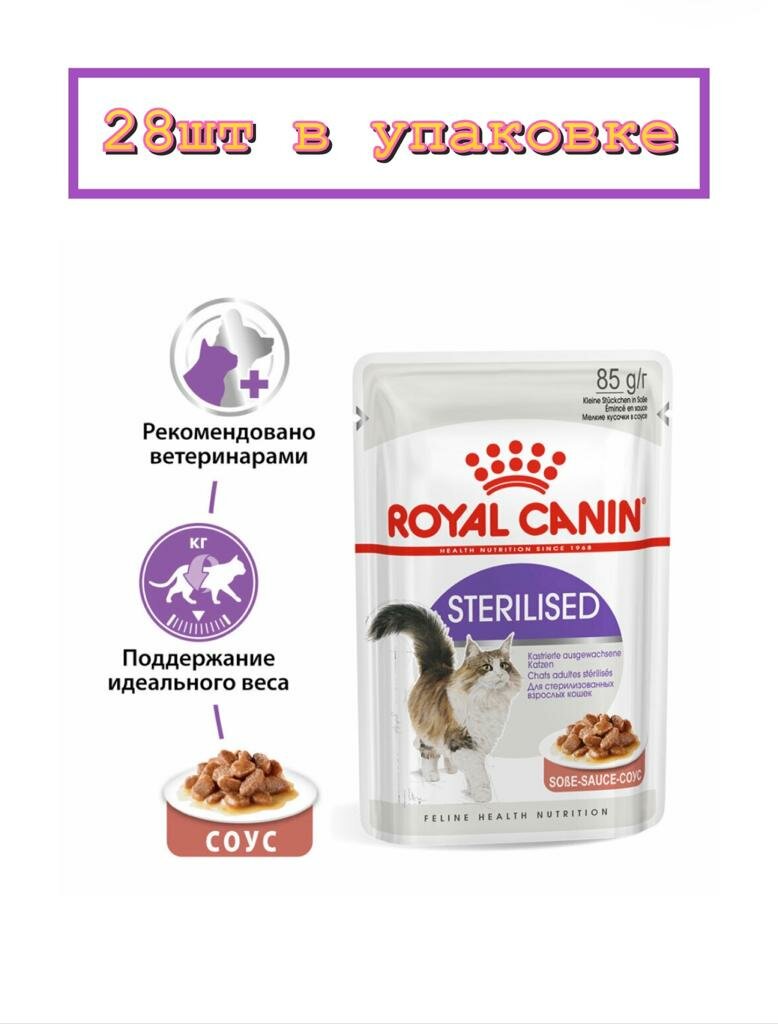 Купить Влажный корм для взрослых стерилизованных кошек Royal Canin 85г*28шт В соусе