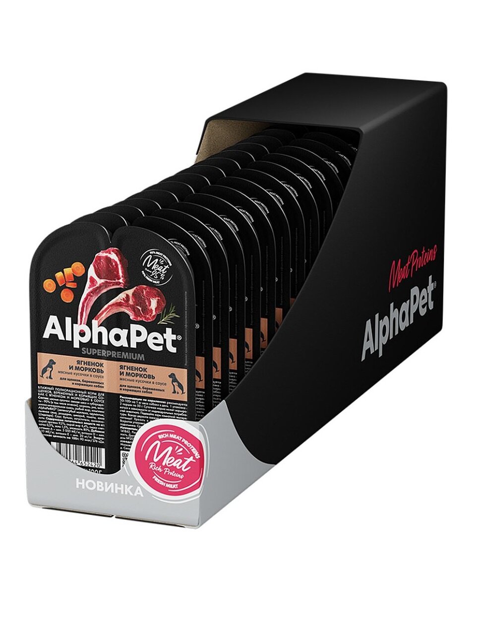 Купить Влажный полнорационный корм AlphaPet SUPERPREMIUM для щенков, беременных и кормящих собак кусочки ягненок и морковь в соусе 100 гр.(Упаковка 15 блистеров)