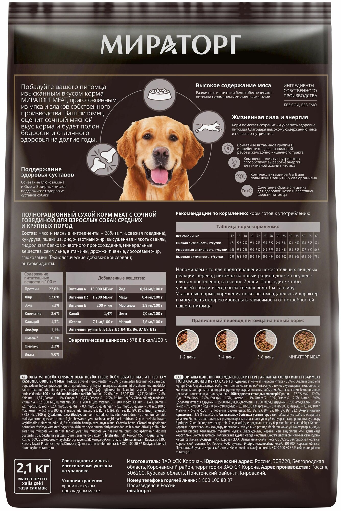 Полнорационный сухой корм MEAT с сочной говядиной для взрослых собак средних и крупных пород 2,1 кг интересное: