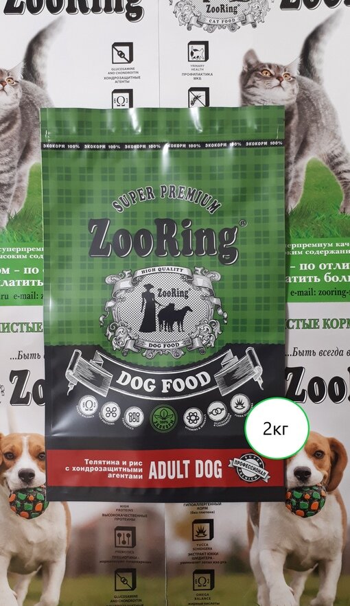 Купить Сухой корм для собак ZooRing телятина, с рисом 2 кг
