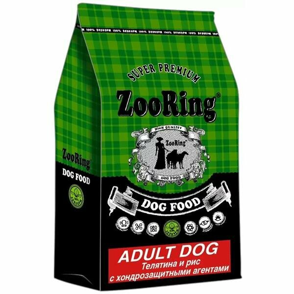 Сухой корм с хондропротектерами ZooRing Adult Dog 25/13 телятина и рис для собак, 2кг