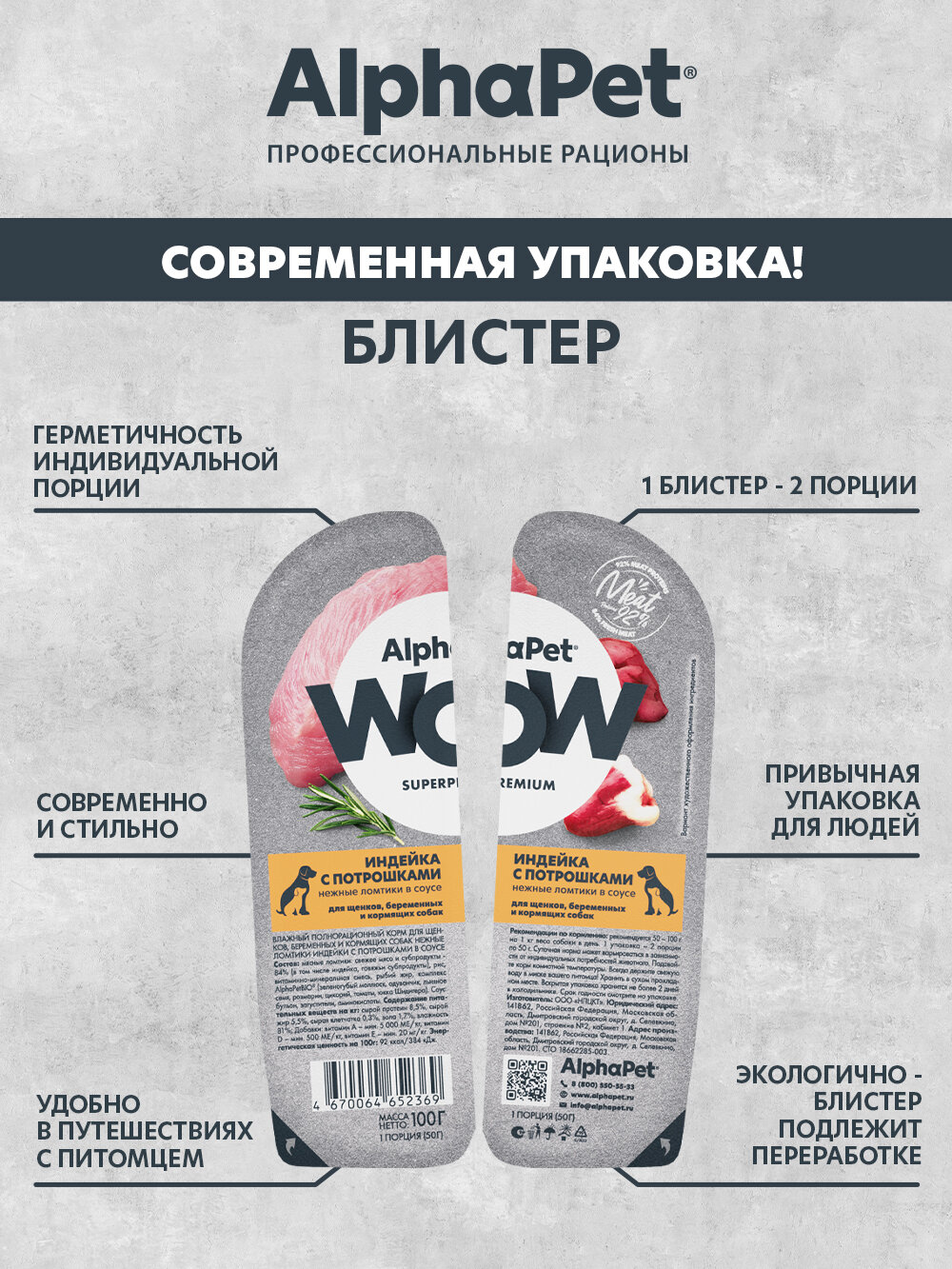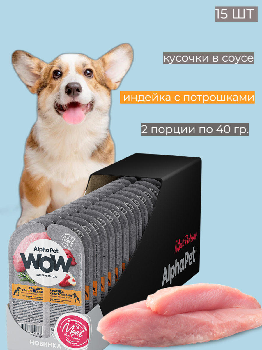 Влажный полнорационный корм для щенков, беременных и кормящих собак ломтики индейки с потрошками в соусе AlphaPet WOW Superpremium (Упаковка 15 блистеров) интересное:
