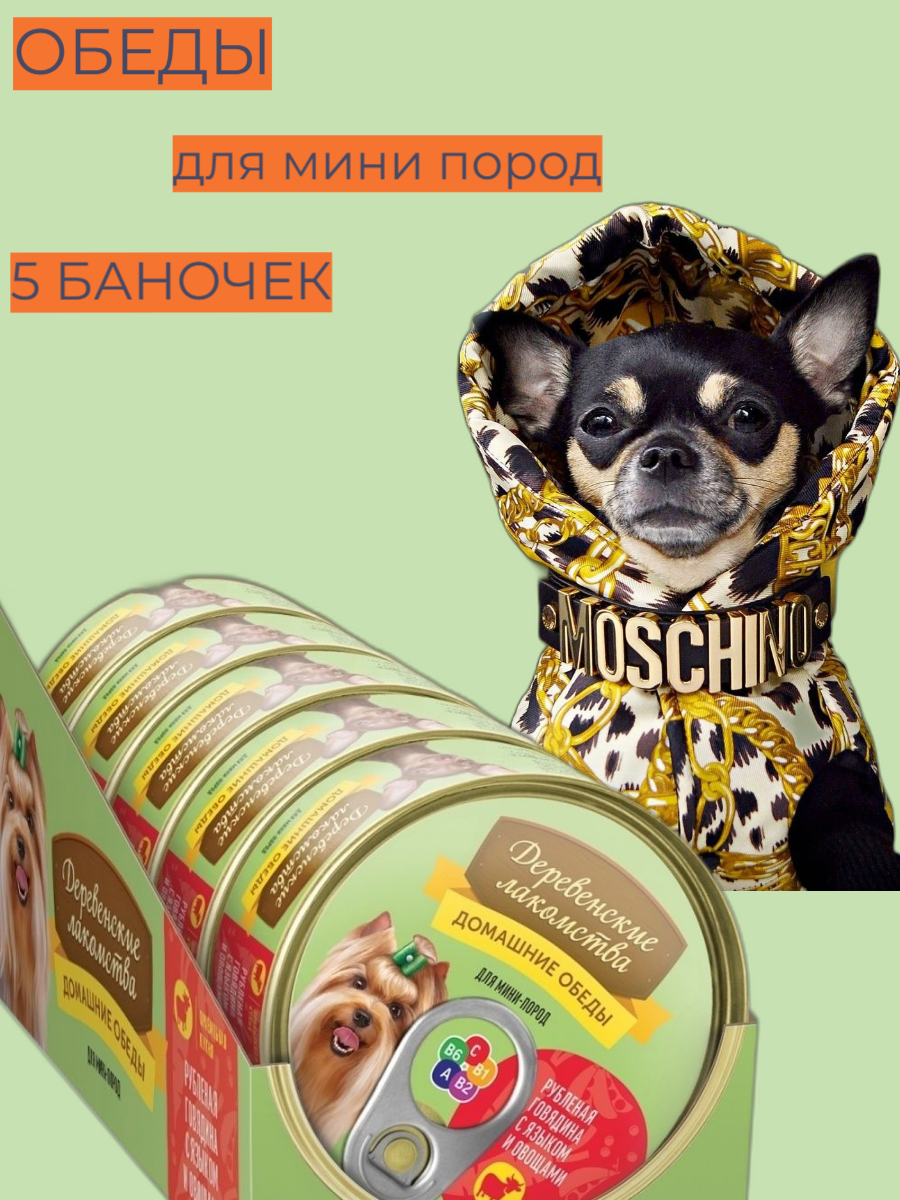 СохранитьКонсервы для собак мини пород Деревенские лакомства Домашние обеды, рубленая говядина с языком и овощами, 100 гр, 5 шт интересное: