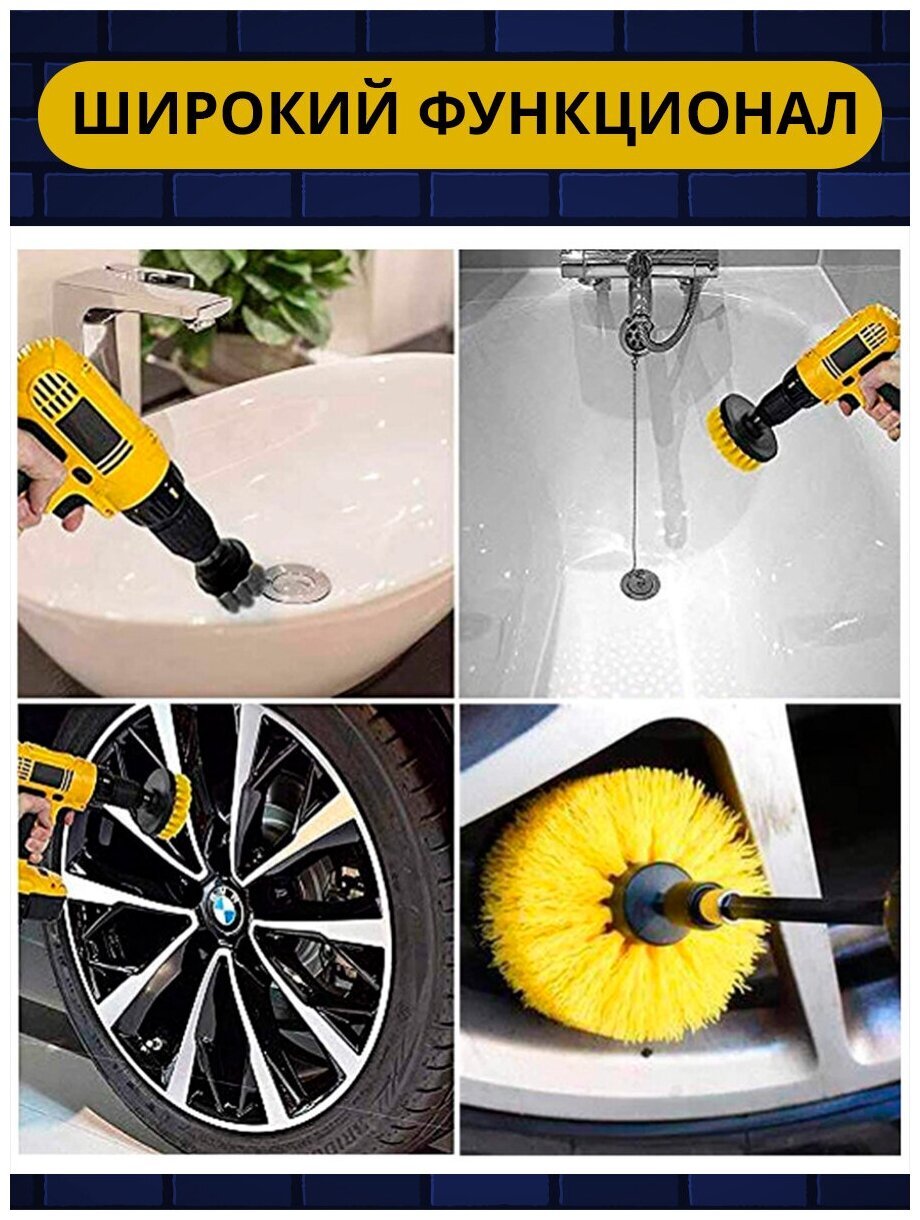 Набор щеток насадок на шуруповерт / Щетка для уборки на дрель набор насадок / для химчистки, полировки, клининга