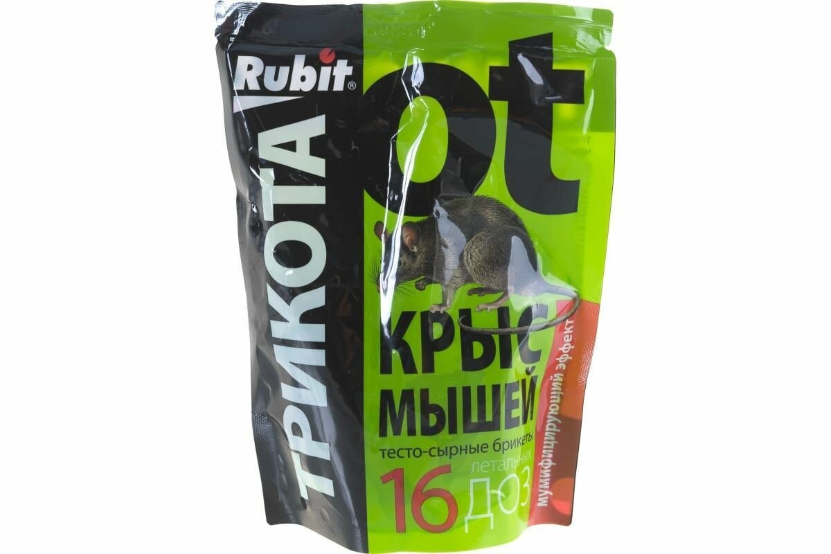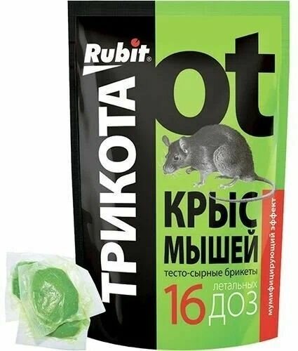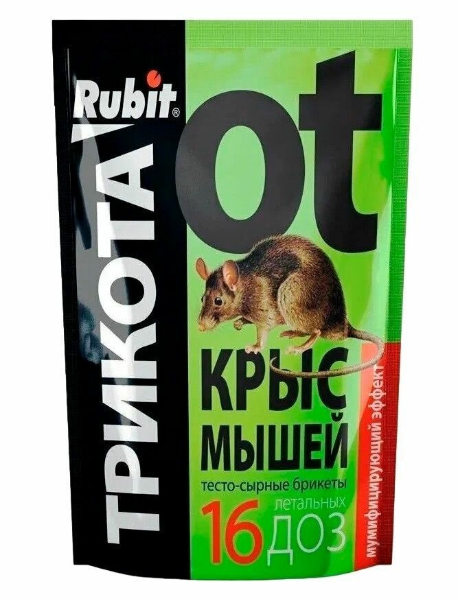 Средство против грызунов крыс и мышей Rubit ТриКота тесто-сырные брикеты мумифицирующий эффект 16 доз 150г