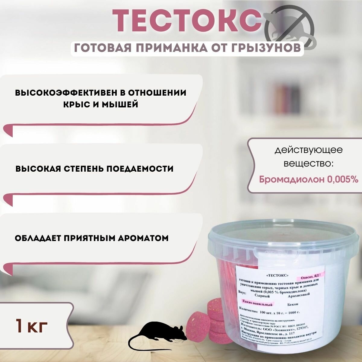 Тестокс 1кг - используют для уничтожения серых крыс, домовых мышей, полёвок и других грызунов. интересное: