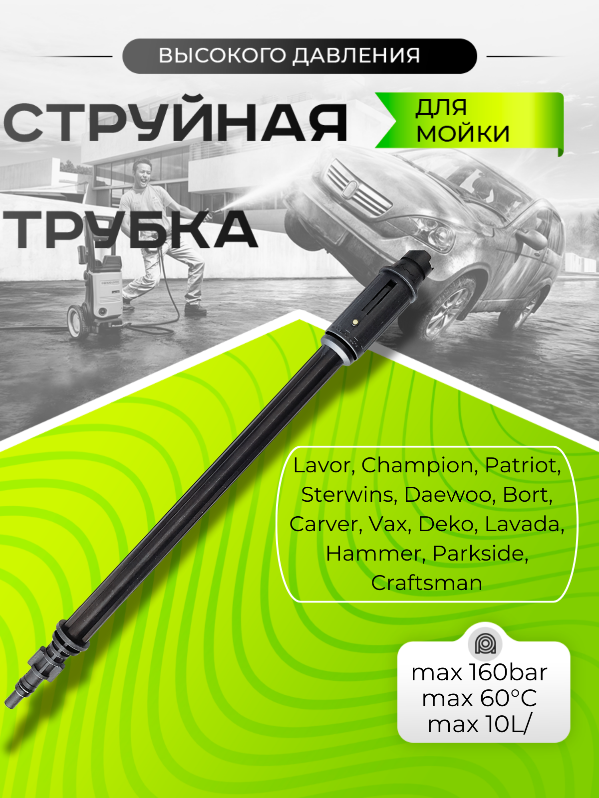 Струйная трубка совместимая с мойками высокого давления Denzel, Интерскол, Bort, Lavada, Patriot, Huter, Daewoo, Champion, Elitech, Sterwins интересное: