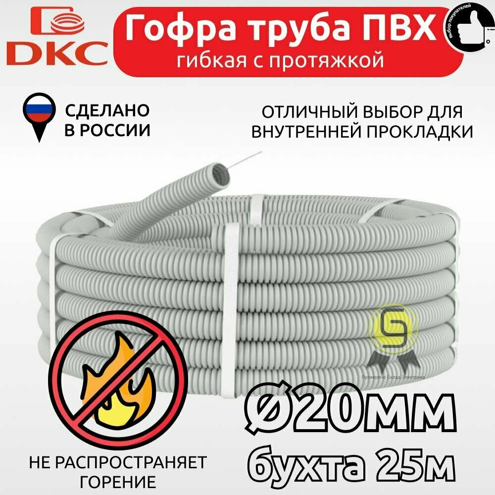 Труба гофрированная ПВХ гибкая легкая d20мм с протяжкой сер. (уп.25м) DKC 9192025 интересное: