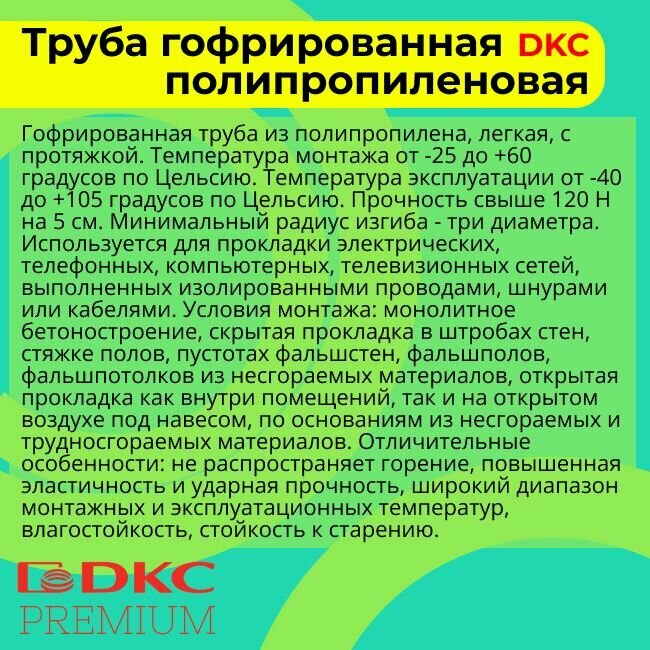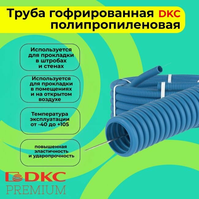 Труба гофрированная Dkc ППЛ d20мм легкая с протяжкой син. (уп.100м), 11920 интересное: