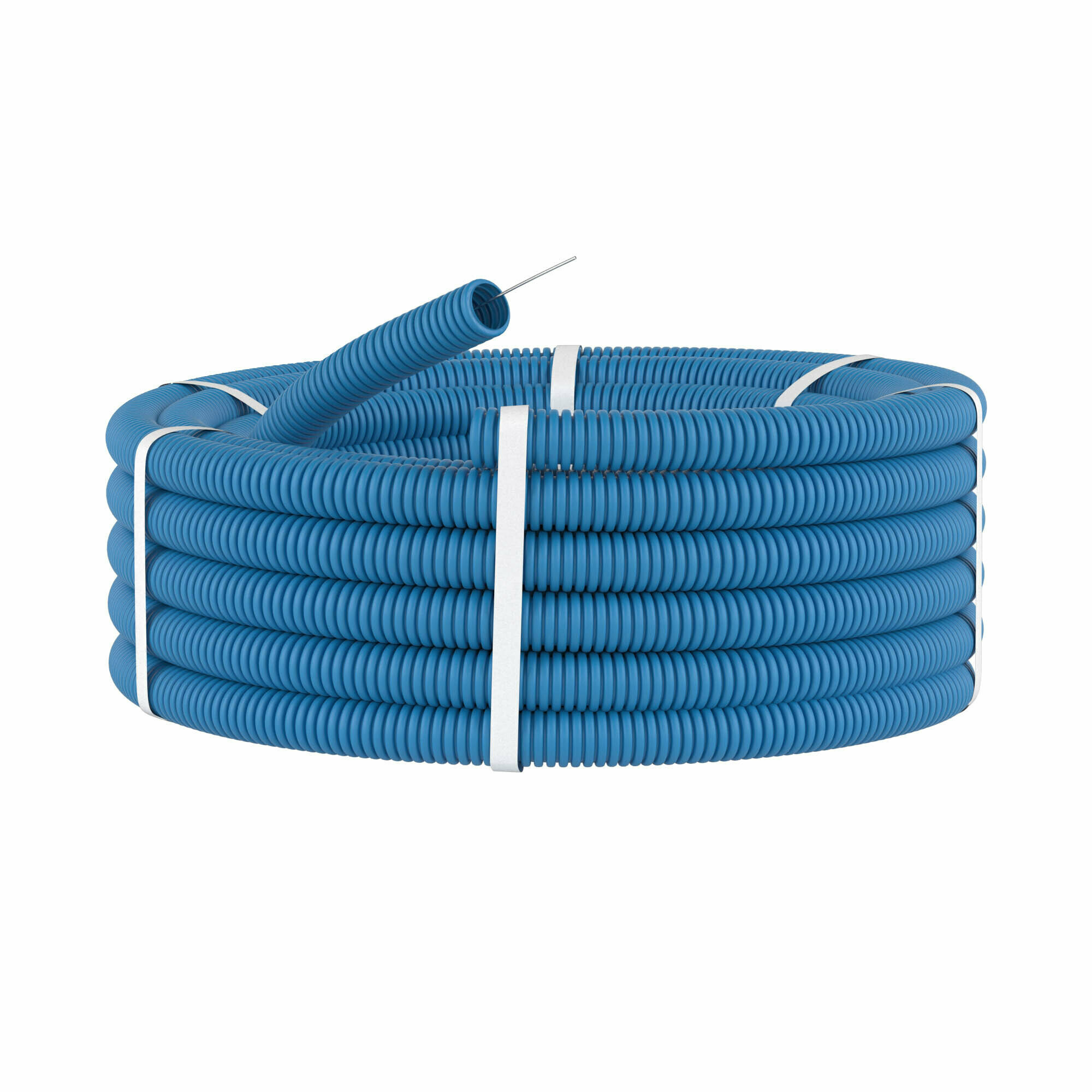Труба гофрированная ППЛ 20 мм с протяжкой легкая синяя (100м) 11920
