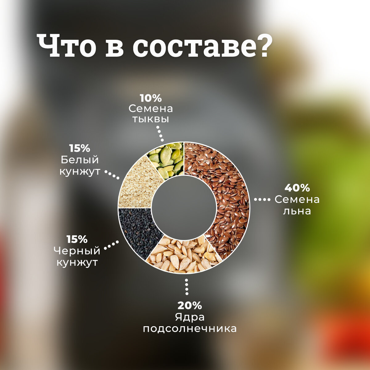 | Состав | Тыквенные Семечки Очищенные, Семена Льна, Подсолнечника, Кунжут Черный и Белый |