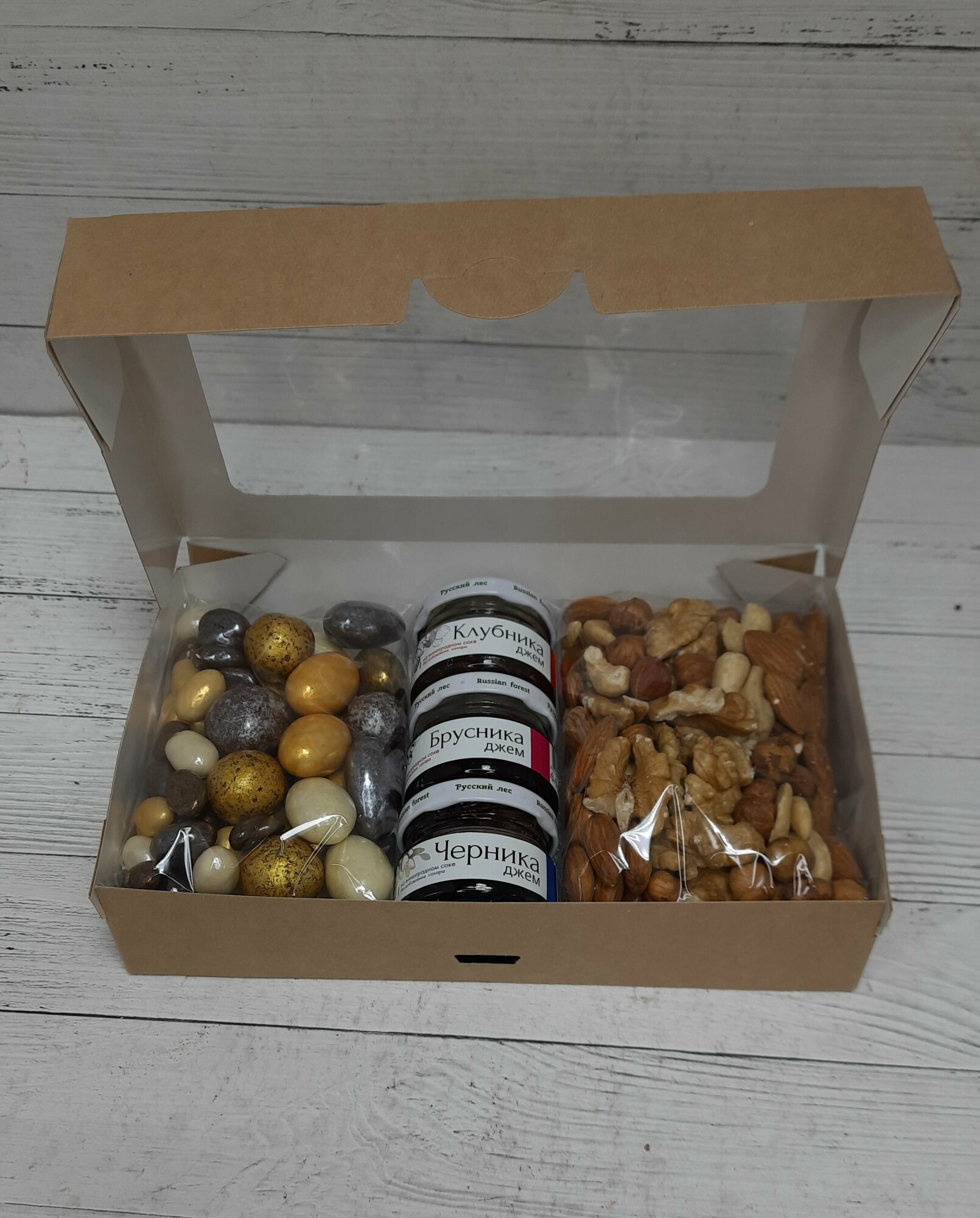 | Состав | Миндаль, Кешью, Грецкий, Фундук, Орехи в шоколаде Карнавал , Ягодные джемы. |