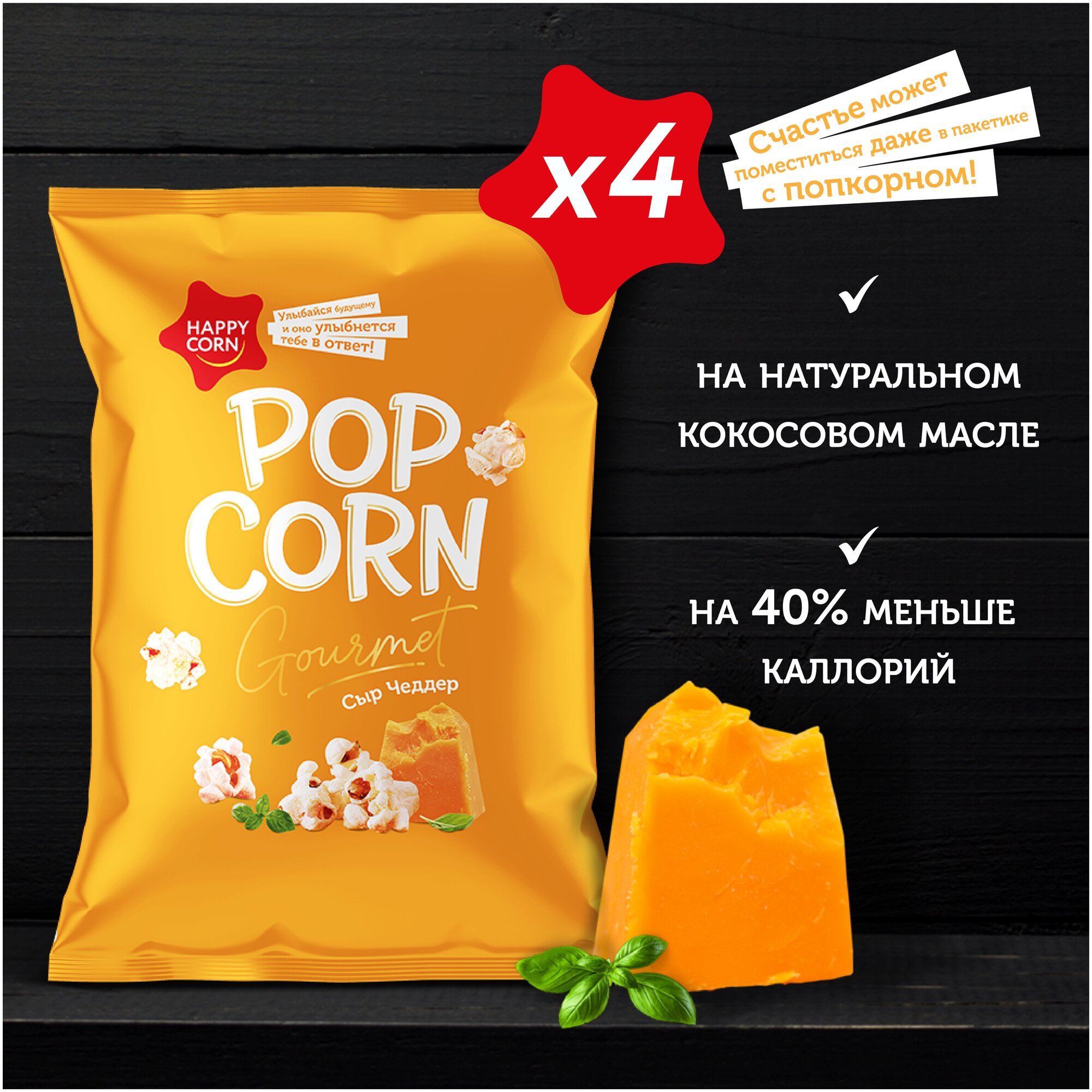 Попкорн Премиум HAPPY CORN Gourmet Сыр Чеддер 4 шт по 50 г интересное: