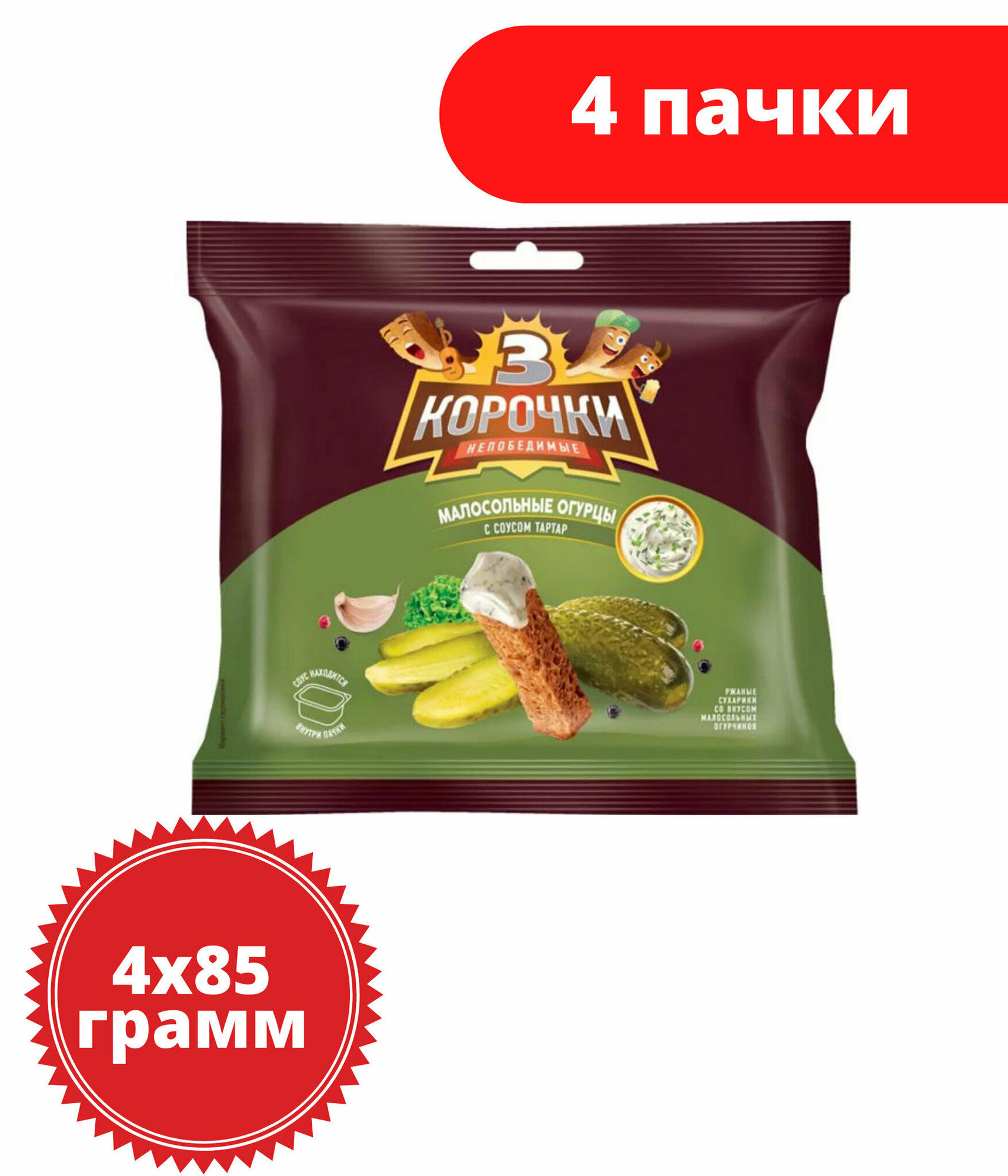 Сухари 3 Корочки, сухарики со вкусом малосольных огурчиков и соусом тар-тар, 85 г, 4 пачки интересное: