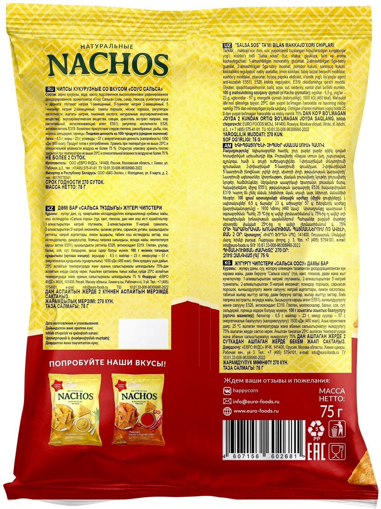 Ниже Вы можете прочитать отзывы на Чипсы кукурузные (начос) HAPPY CRISP со вкусом соус Сальса 4 шт по 75 г, ознакомится с подробными характеристиками, посмотреть интересные обзоры и фотографии на Чипсы кукурузные (начос) HAPPY CRISP со вкусом соус Сальса 4 шт по 75 г.