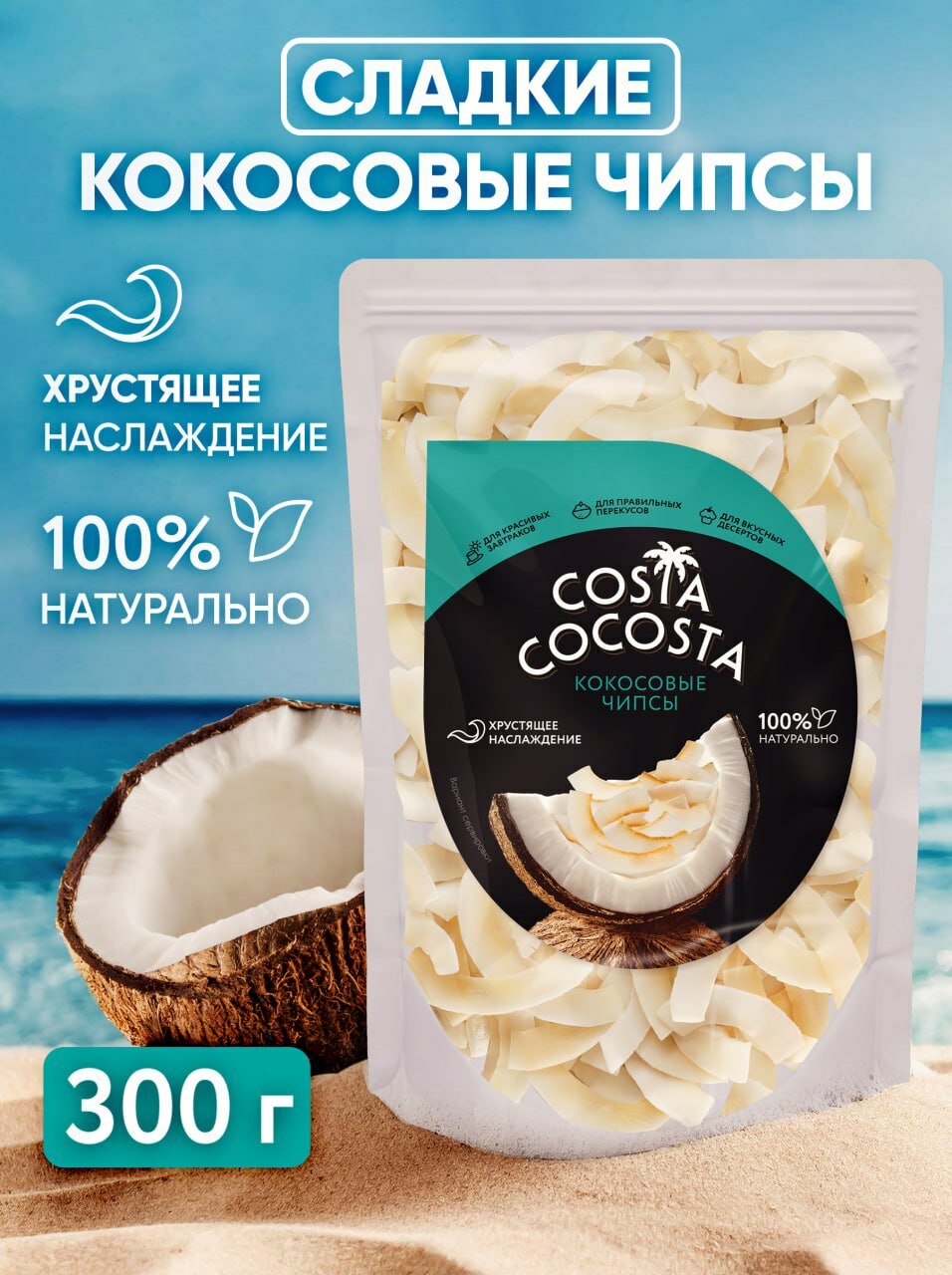 Чипсы кокосовые оригинальные Costa Cocosta 300 г, без добавок.
