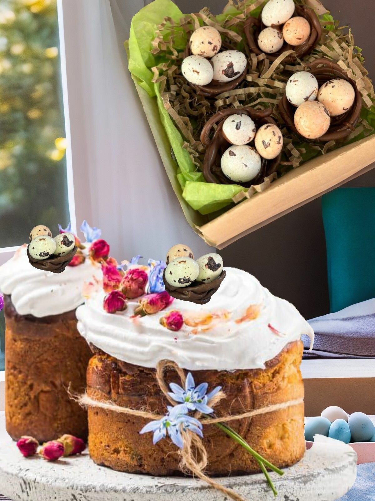 Купить Съедобный пасхальный декор для кулича из шоколада с яйцами из шоколада "Гнезда для кулича" 4шт.
