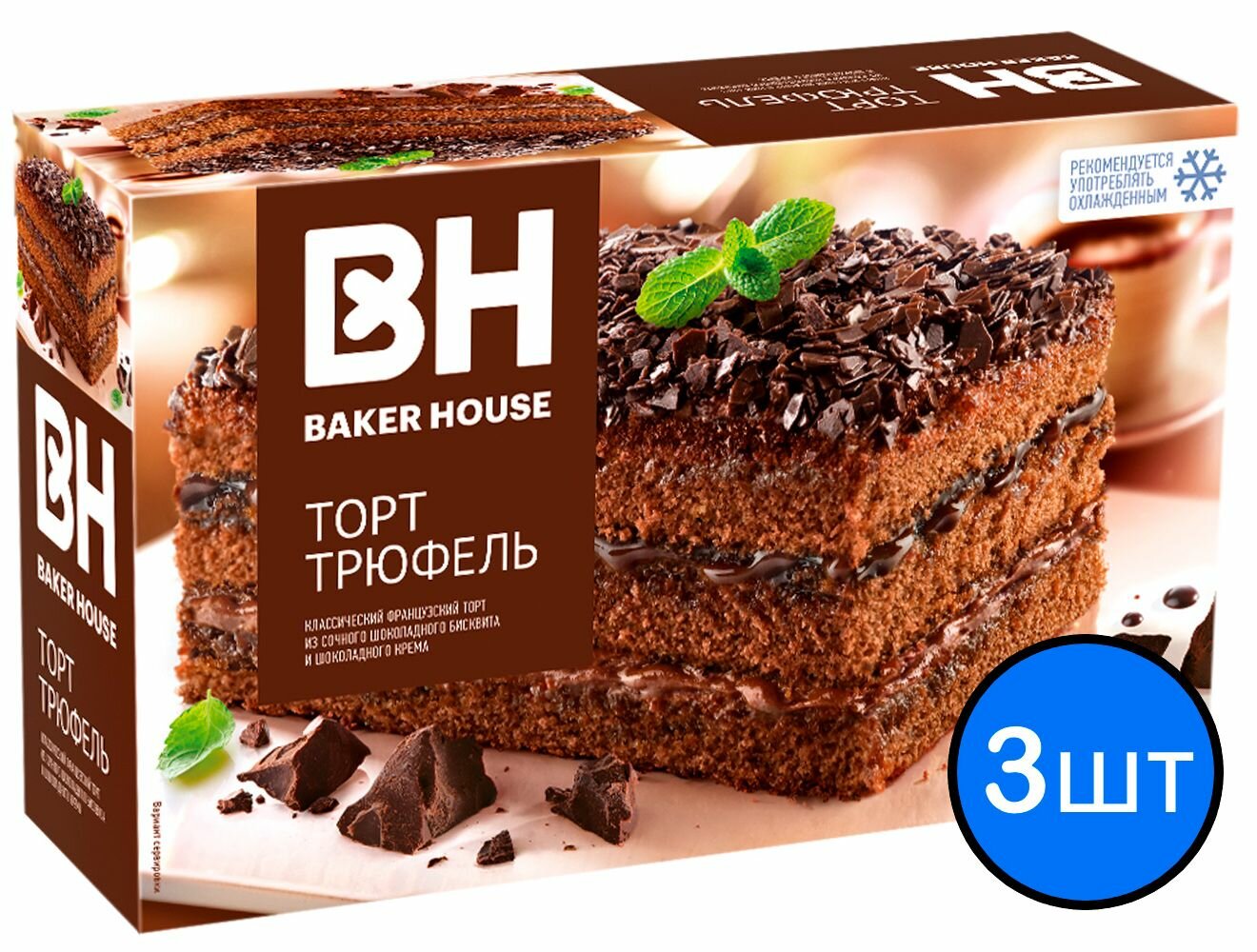 Купить Торт "Трюфель" бисквитный трехслойный "Baker House" 350г х 3шт