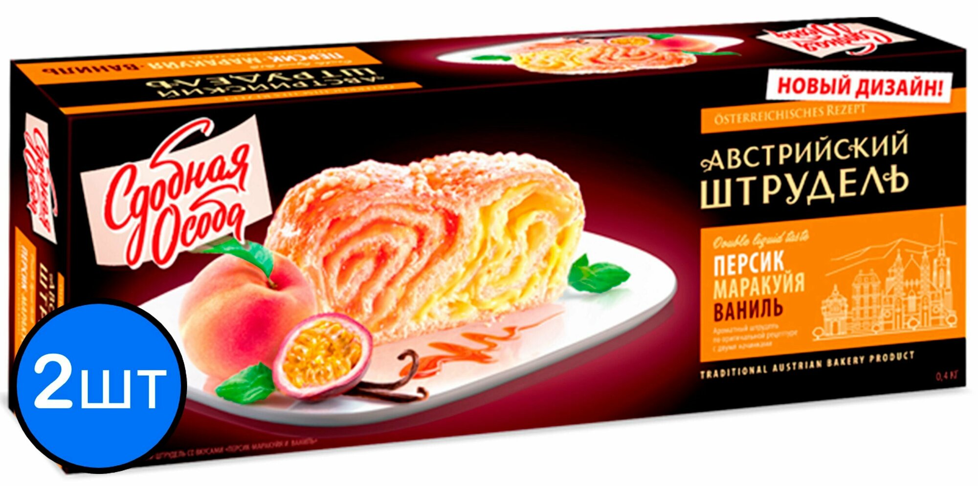 Купить Пирог Персик и маракуйя Сдобная Особа "Австрийский штрудель" 400г х 2шт