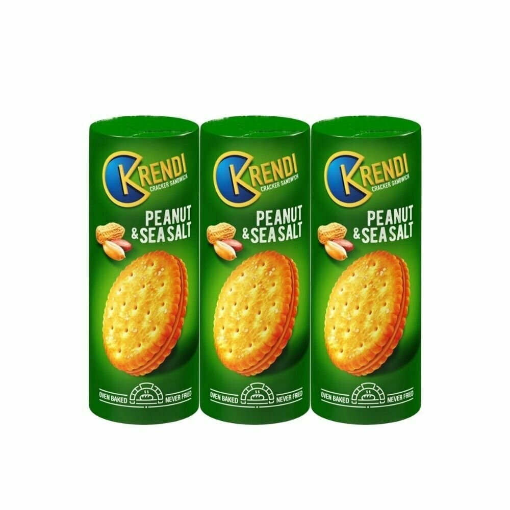 Крекеры Krendi, крекер-сэндвич Peanut&sea salt, 170 г, 3 уп интересное: