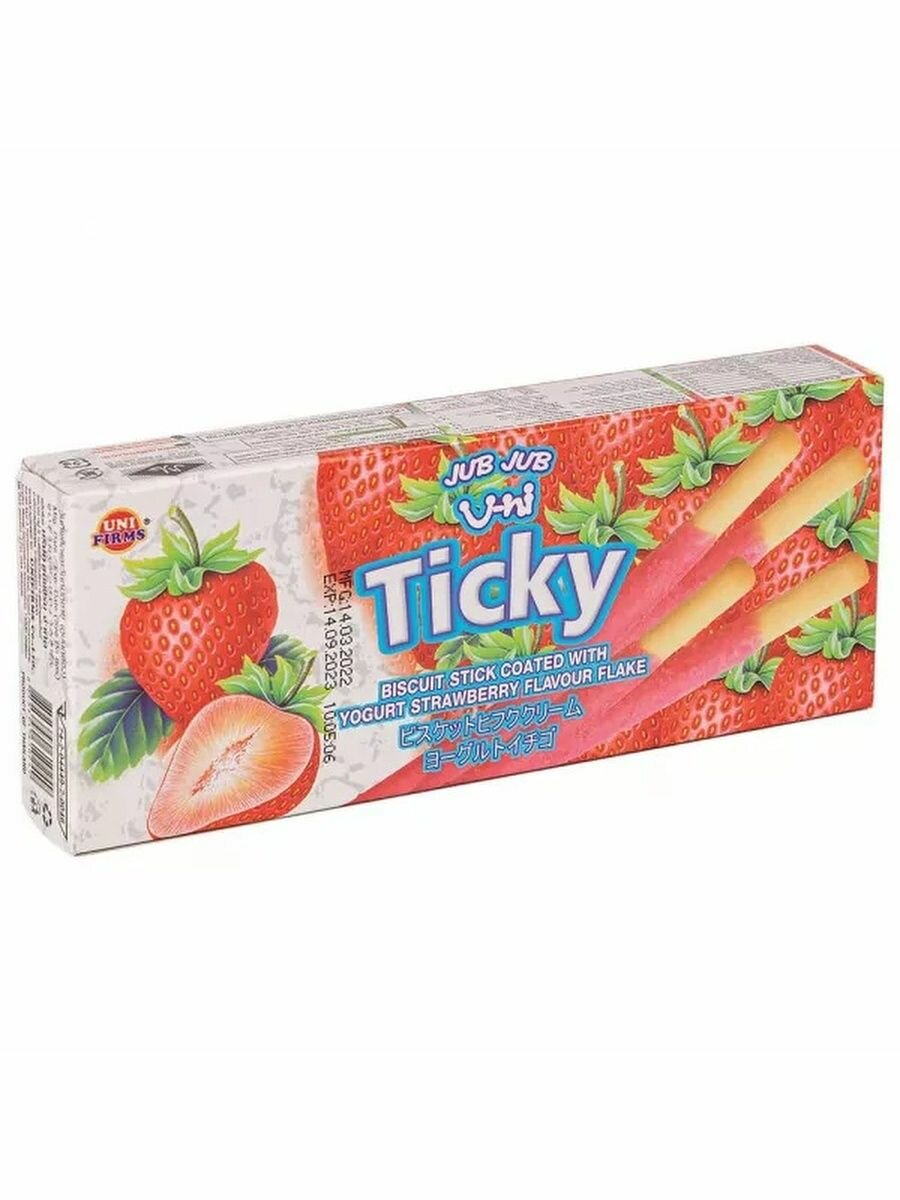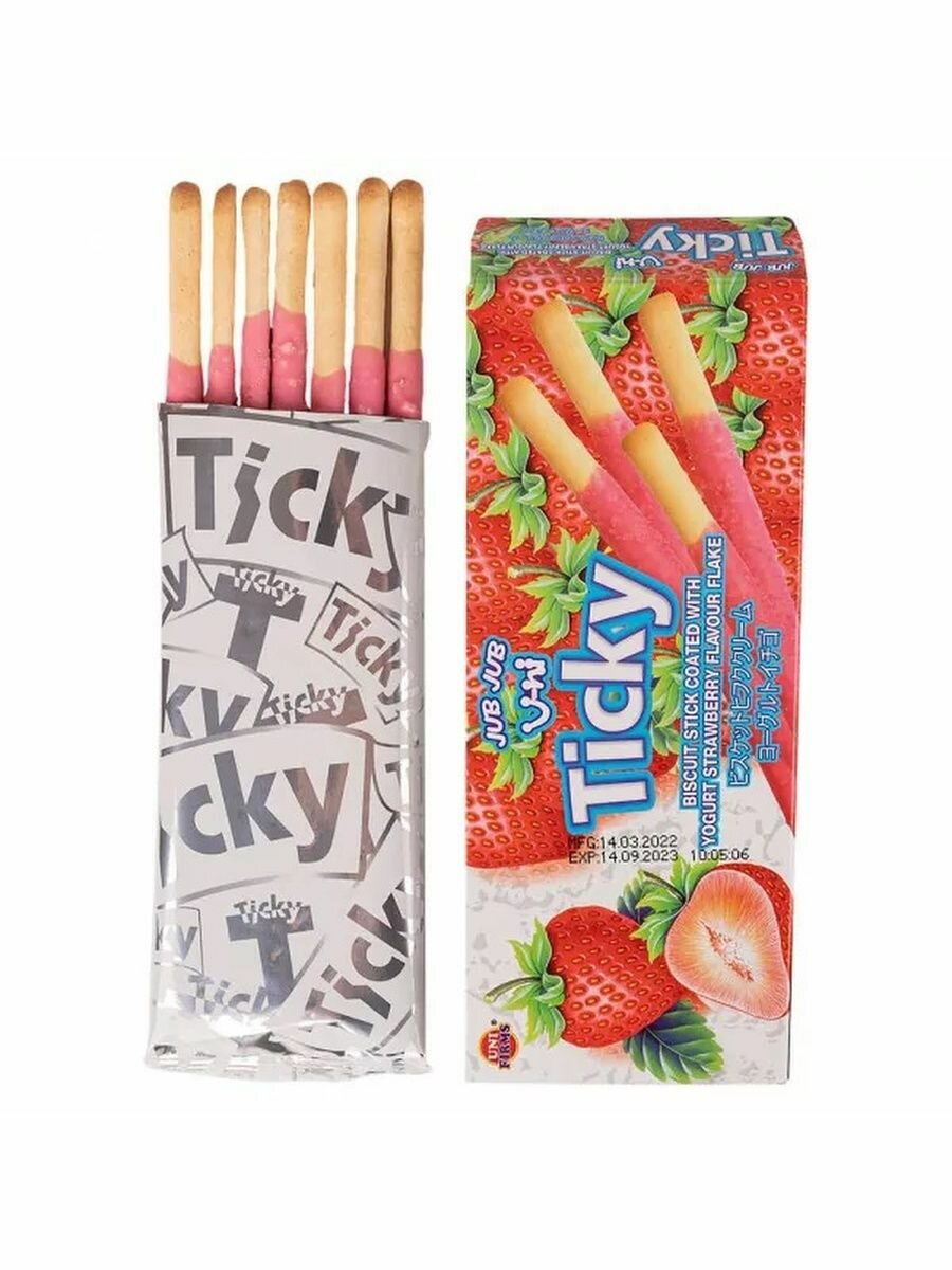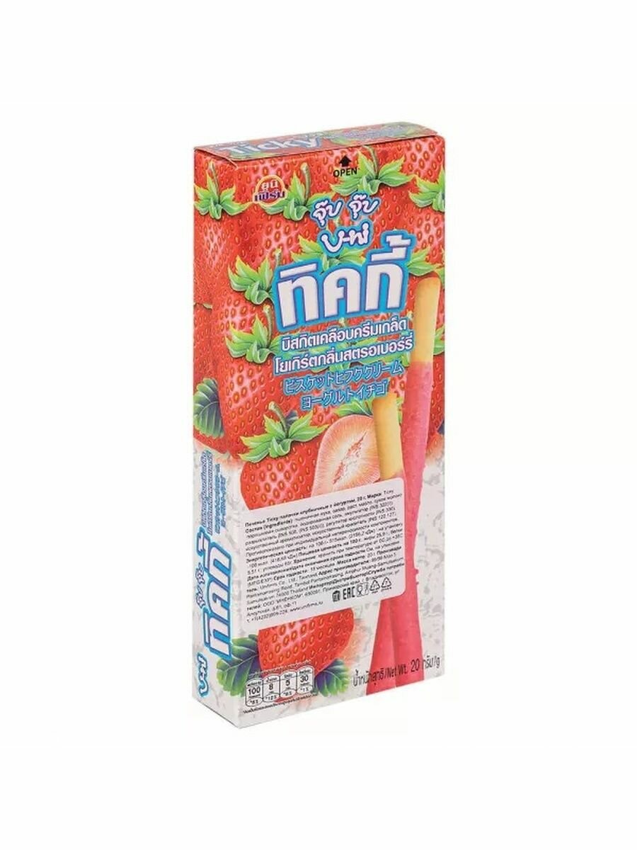 Палочки бисквитные покрытые клубничным кремом с йогуртом Ticky, 20 г интересное:
