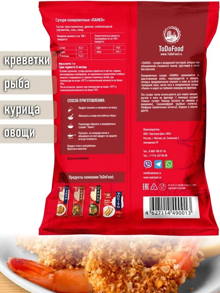 Сухари панировочные панко 2шт*1кг Для жарки во фритюре NOSHIMI NoDoFood интересное: