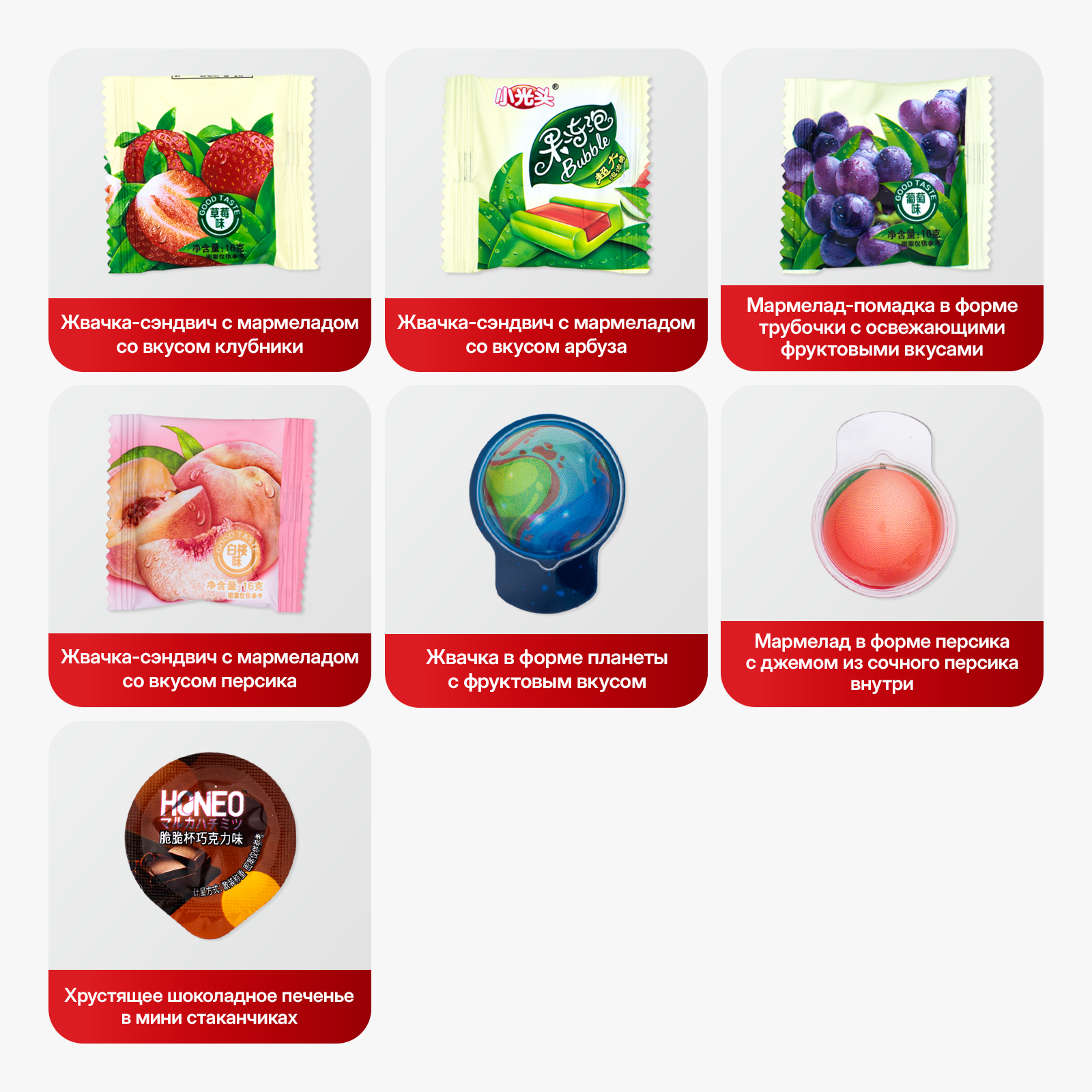 Подарочный набор из 45-и Азиатских сладостей Яркий Вкусный Сюрприз, подарок на день рождения, сладкий бокс интересное: