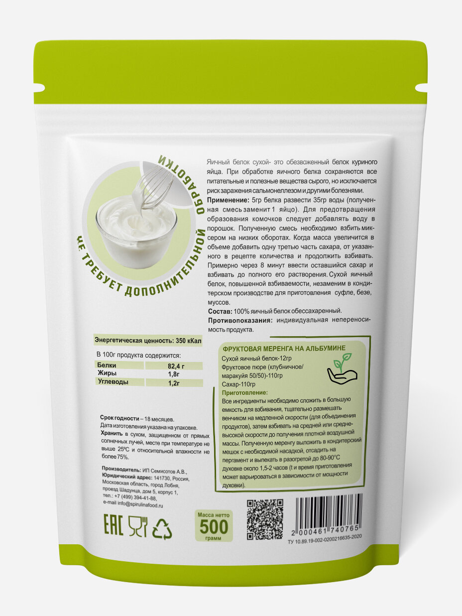 Яичный белок повышенной взбиваемости , 500 гр интересное: