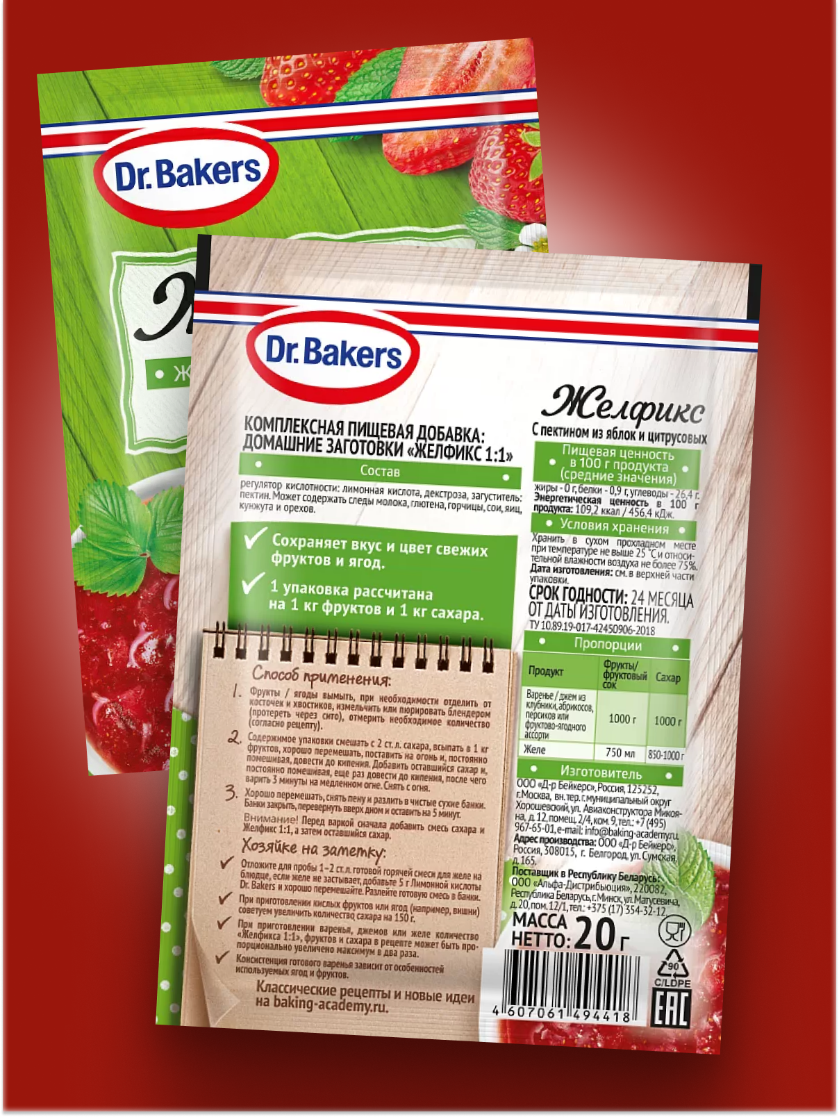 Желфикс для варенья джема желе 1:1 Dr.Bakers 3шт по 20г интересное: