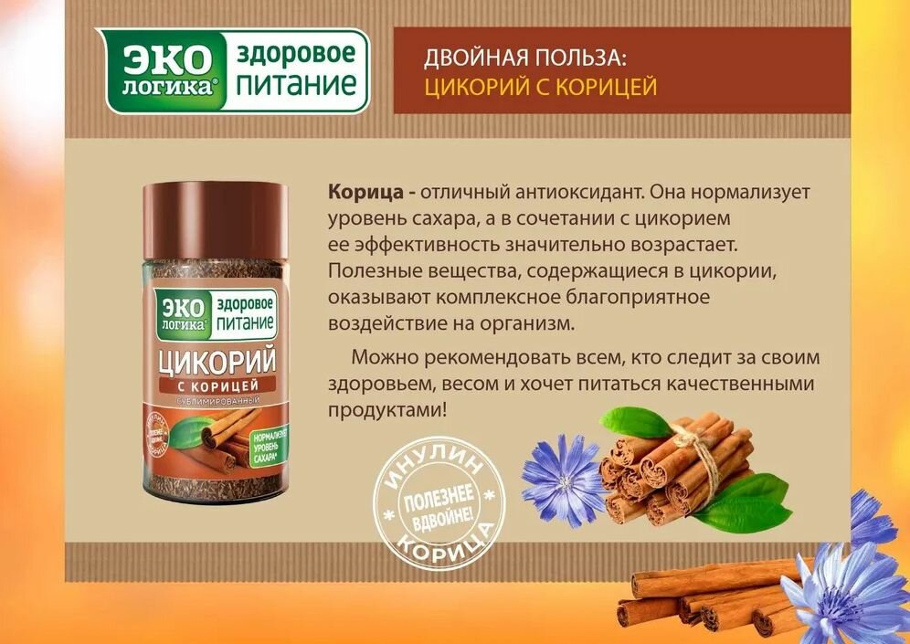 Цикорий Экологика сублимированный с Корицей в банке 85 грамм интересное: