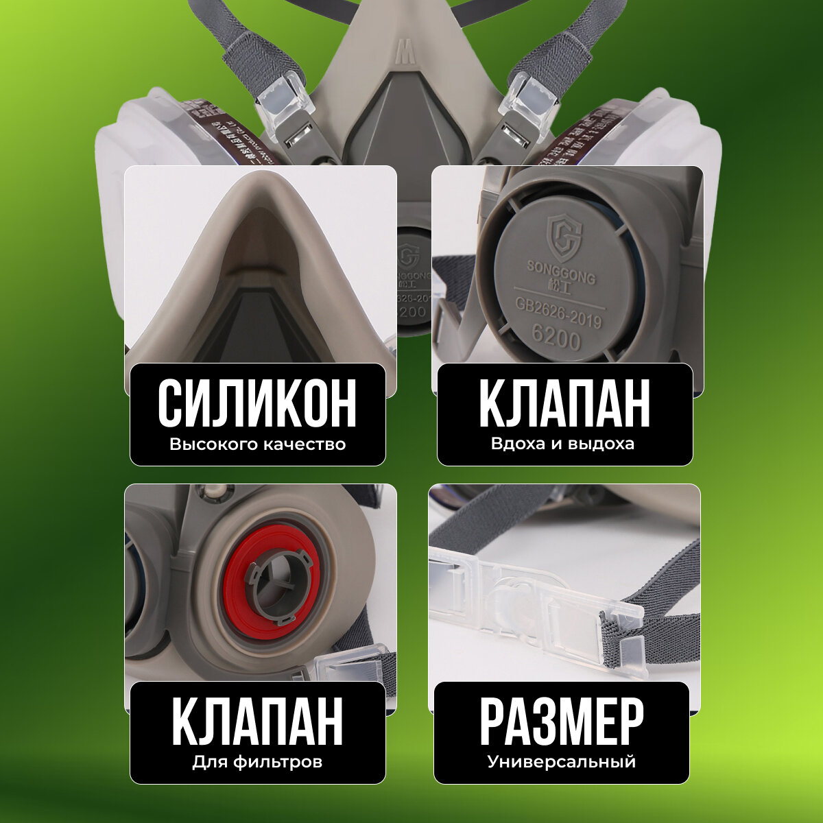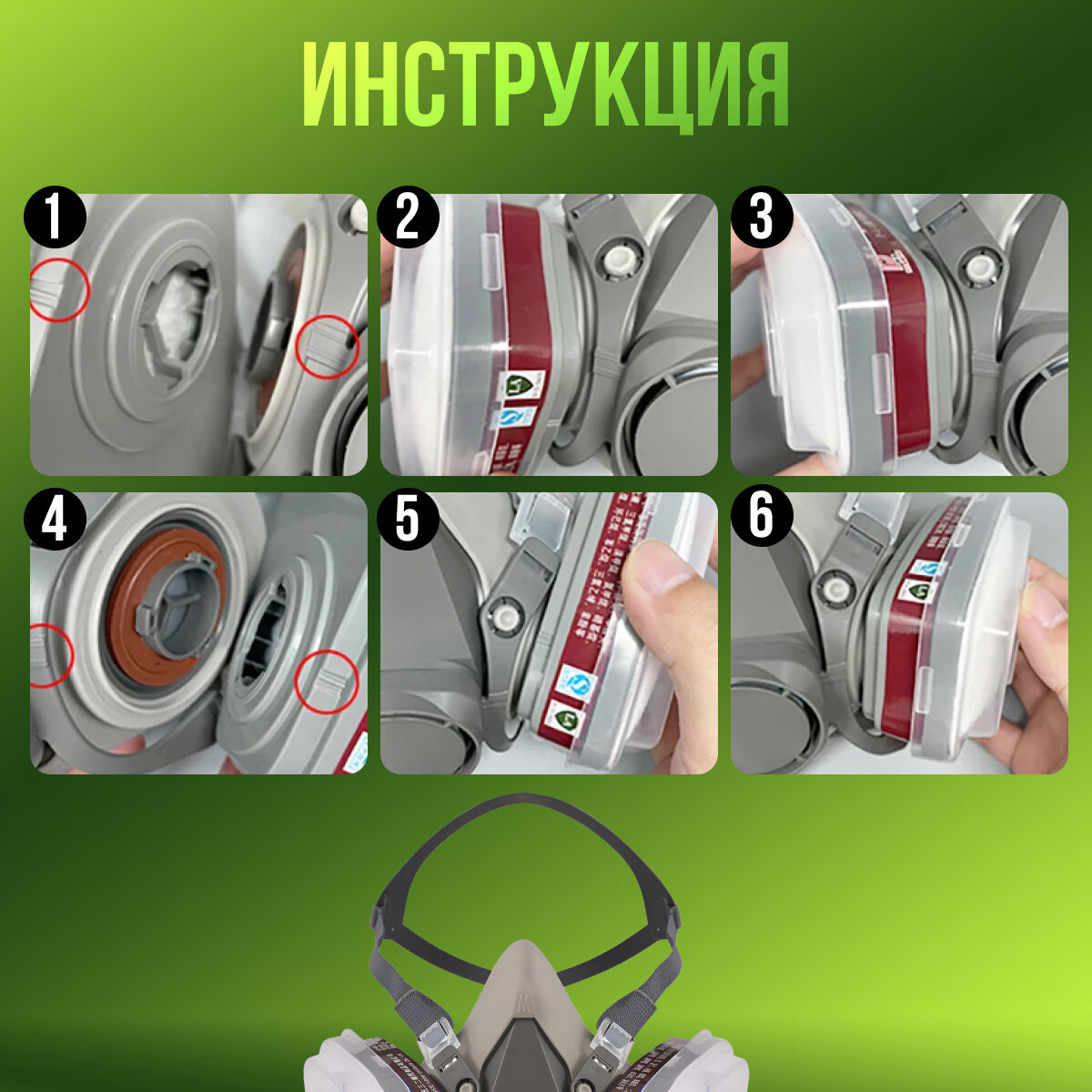 Профессиональный респиратор противогаз маска защитная 6200 замена 3М с угольным фильтром от химии, Zur-Kibet интересное: