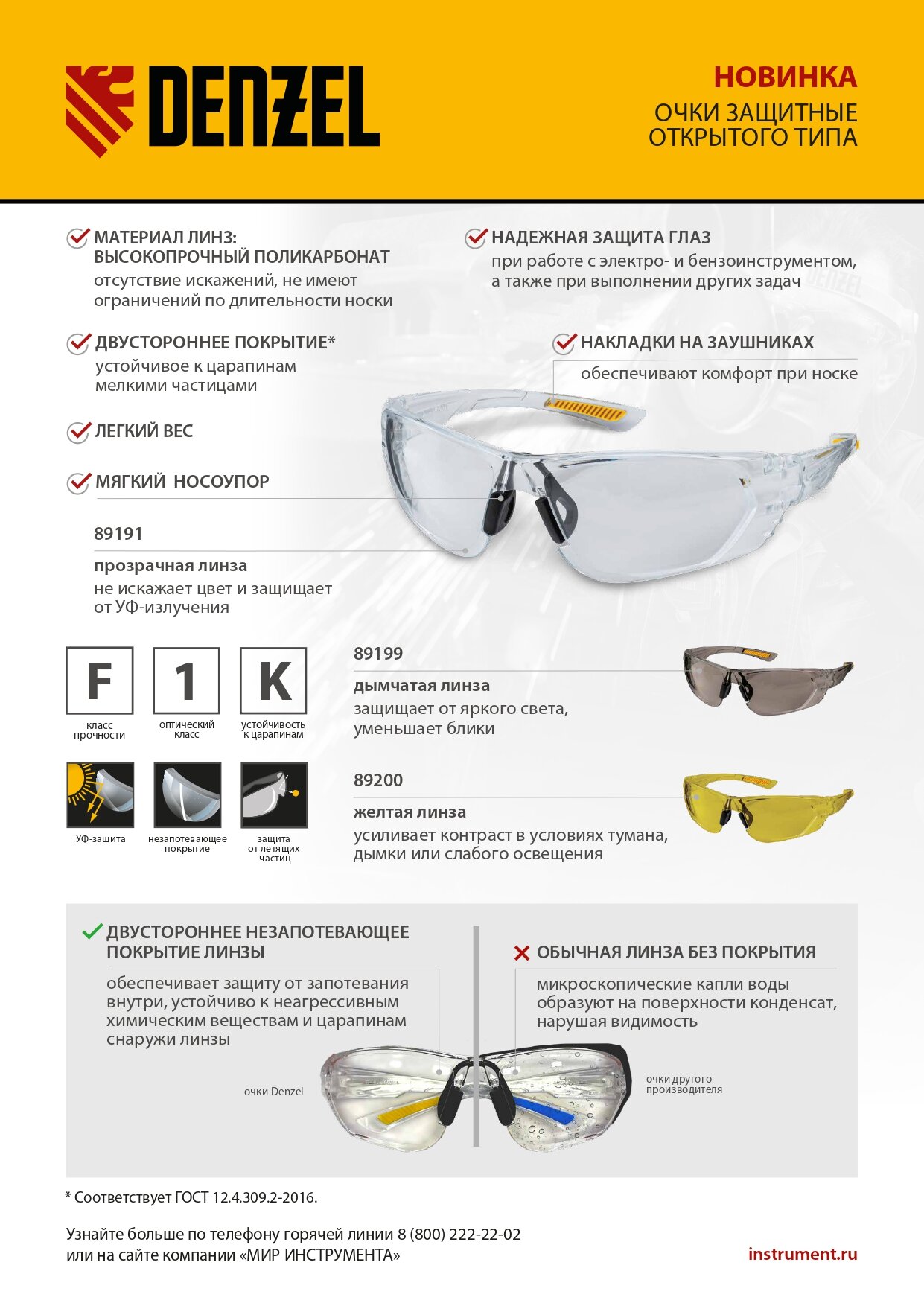 Очки защитные открытые Denzel поликарбонатные, дымчатая линза 89200 интересное:
