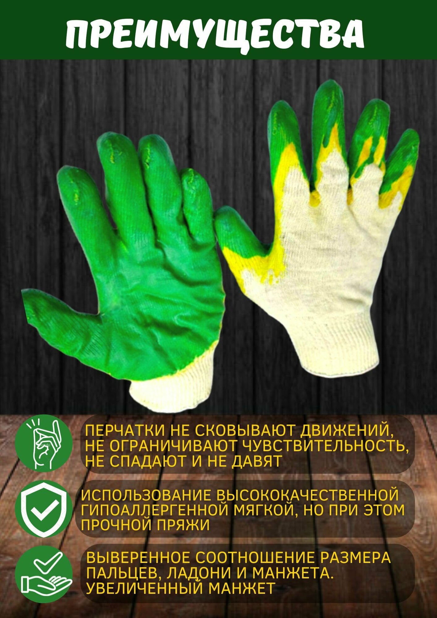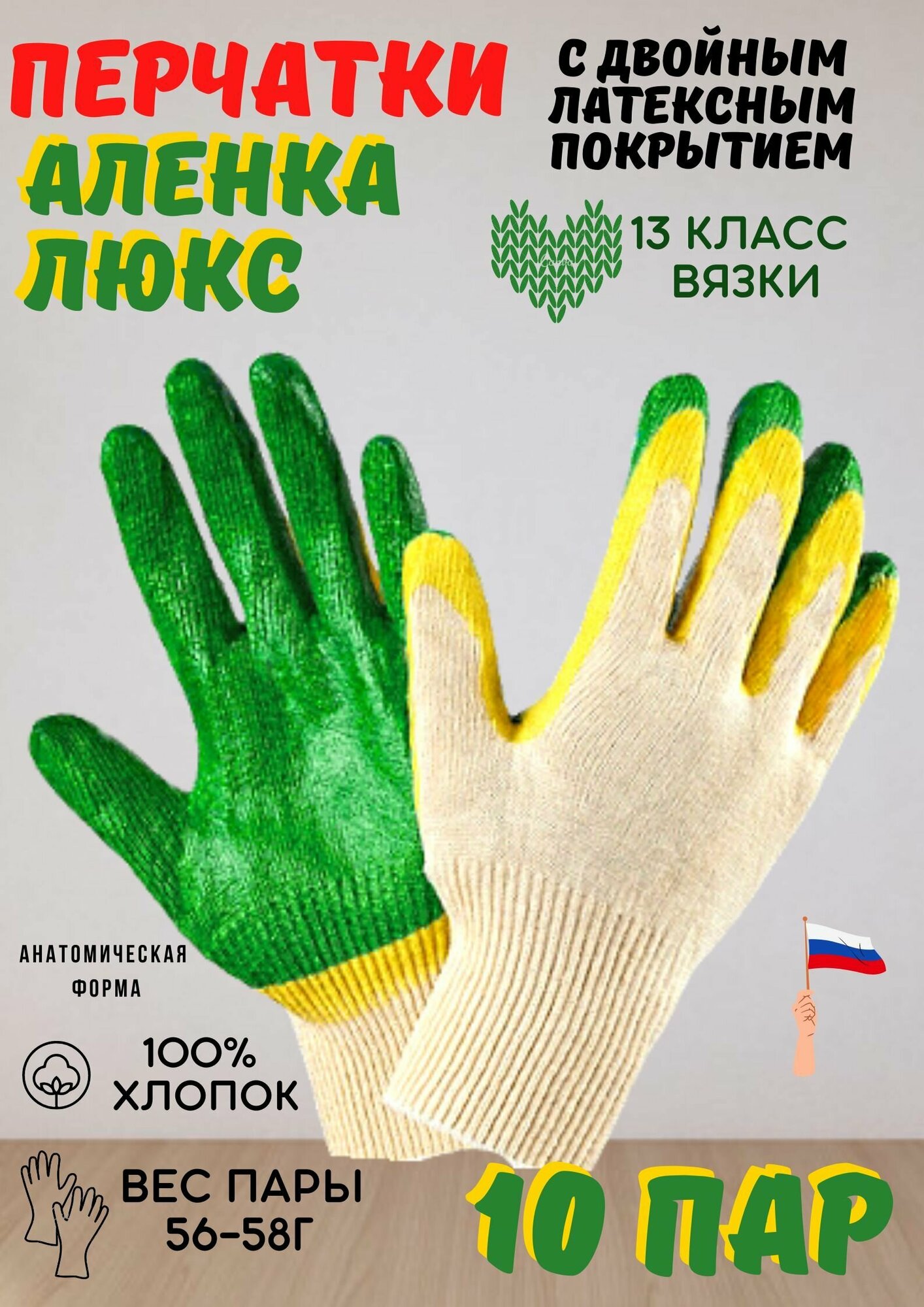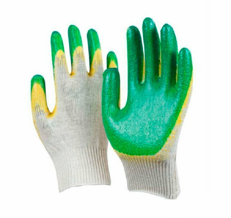 Перчатки с двойным латексным покрытием, зелёные, 10 пар интересное: