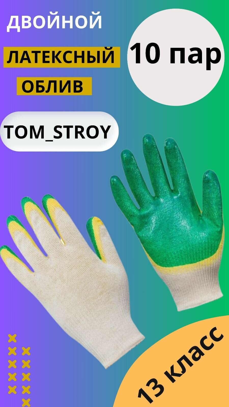 Перчатки х/б 10 пар с двойным латексным обливом ( рабочие трикотажные )