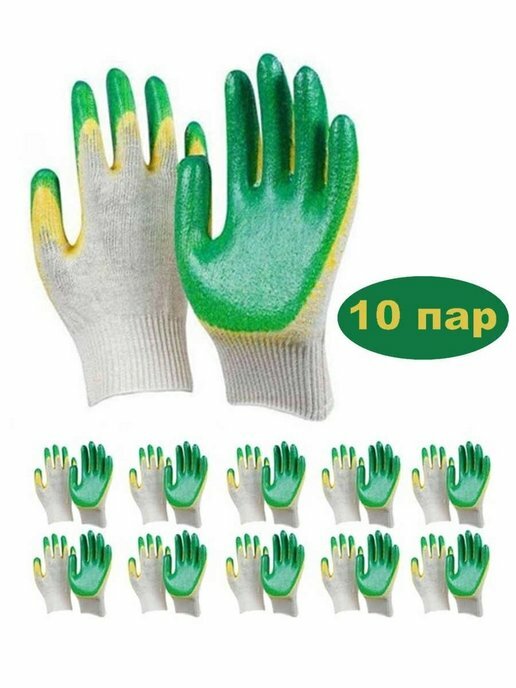 Перчатки х/б с двойным латексным обливом 10 пар ( рабочие трикотажные )