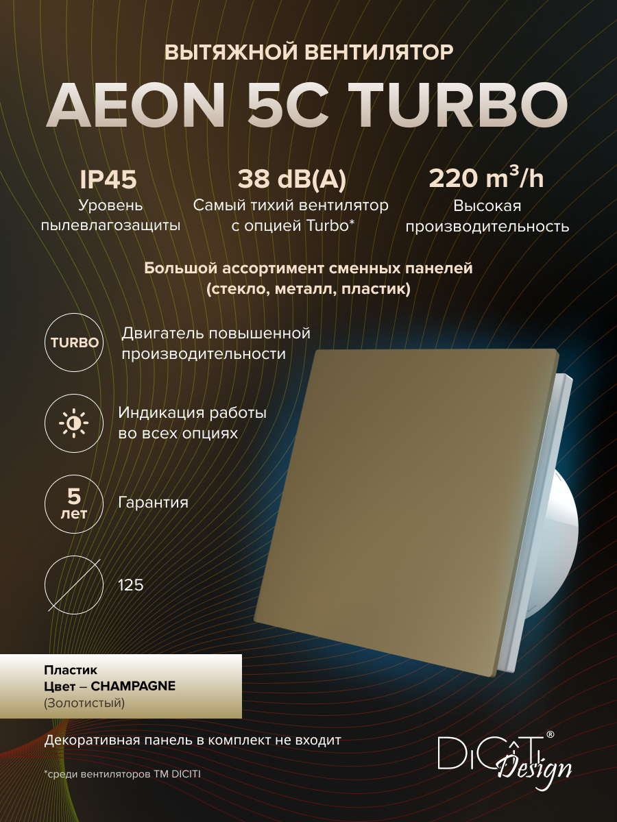 СохранитьВентилятор вытяжной DICITI AEON 5C TURBO с обратным клапаном, D125 мм интересное: