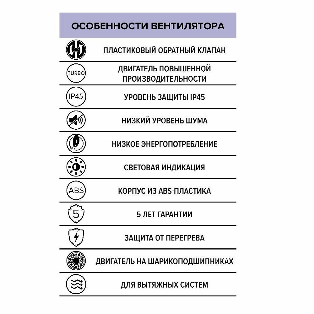 Вентилятор вытяжной DICITI AEON 5C TURBO с обратным клапаном, D125 мм