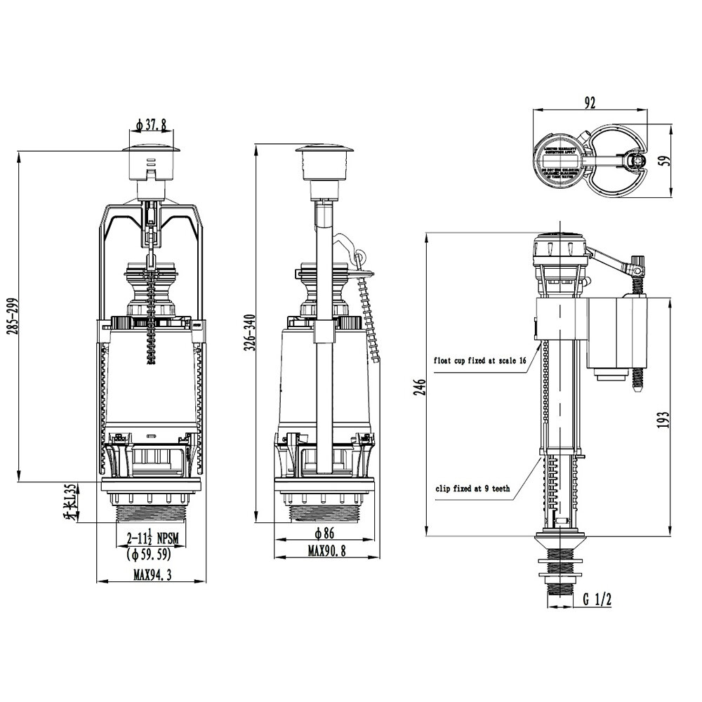 Арматура для бачка сливная/наливная нижнее подключение кнопка белый 1/реж универсал РБМ АС-17.1