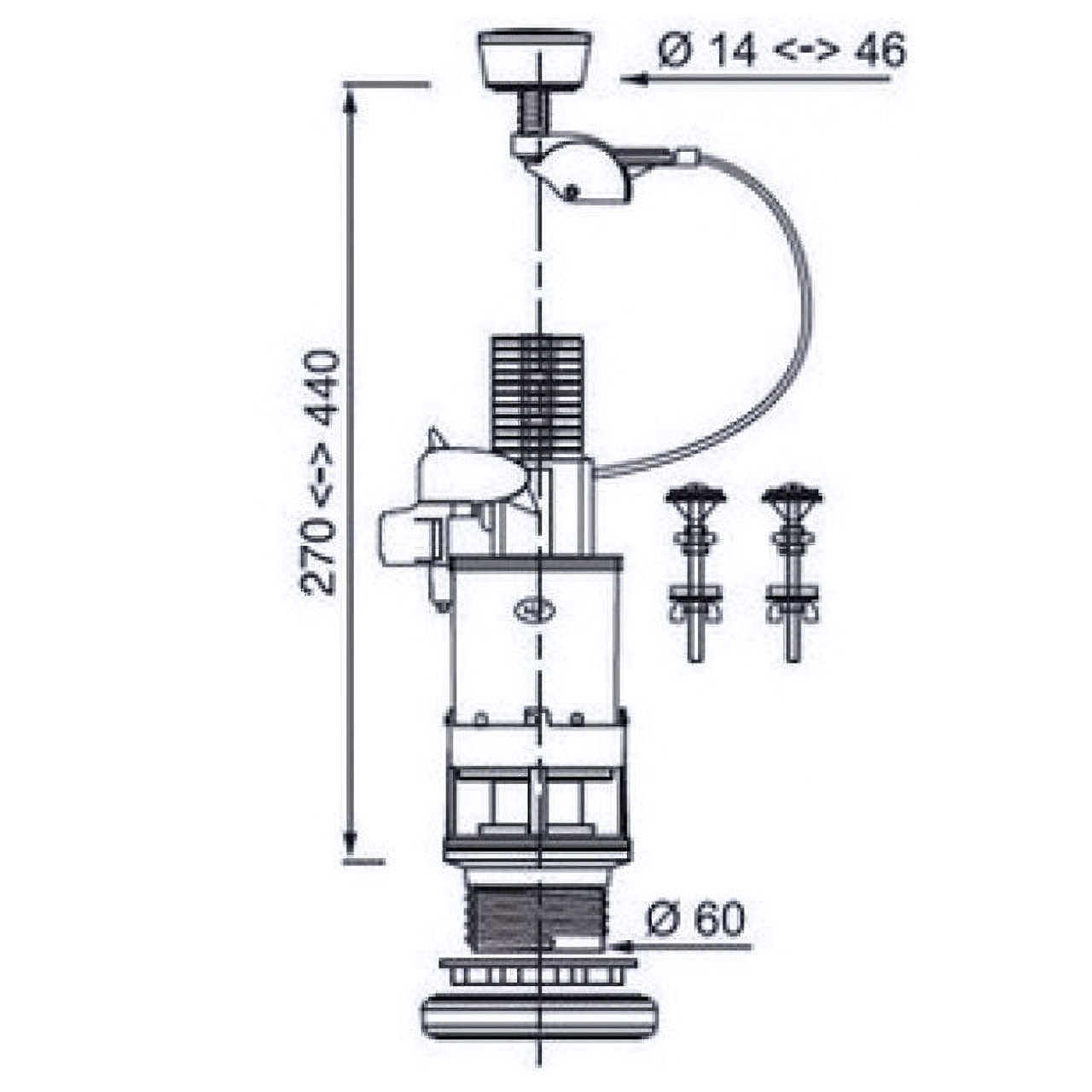 Сливной механизм тросиковый "MD2" с одним режимом слива арматура для бачка унитаза WIRQUIN 10717559