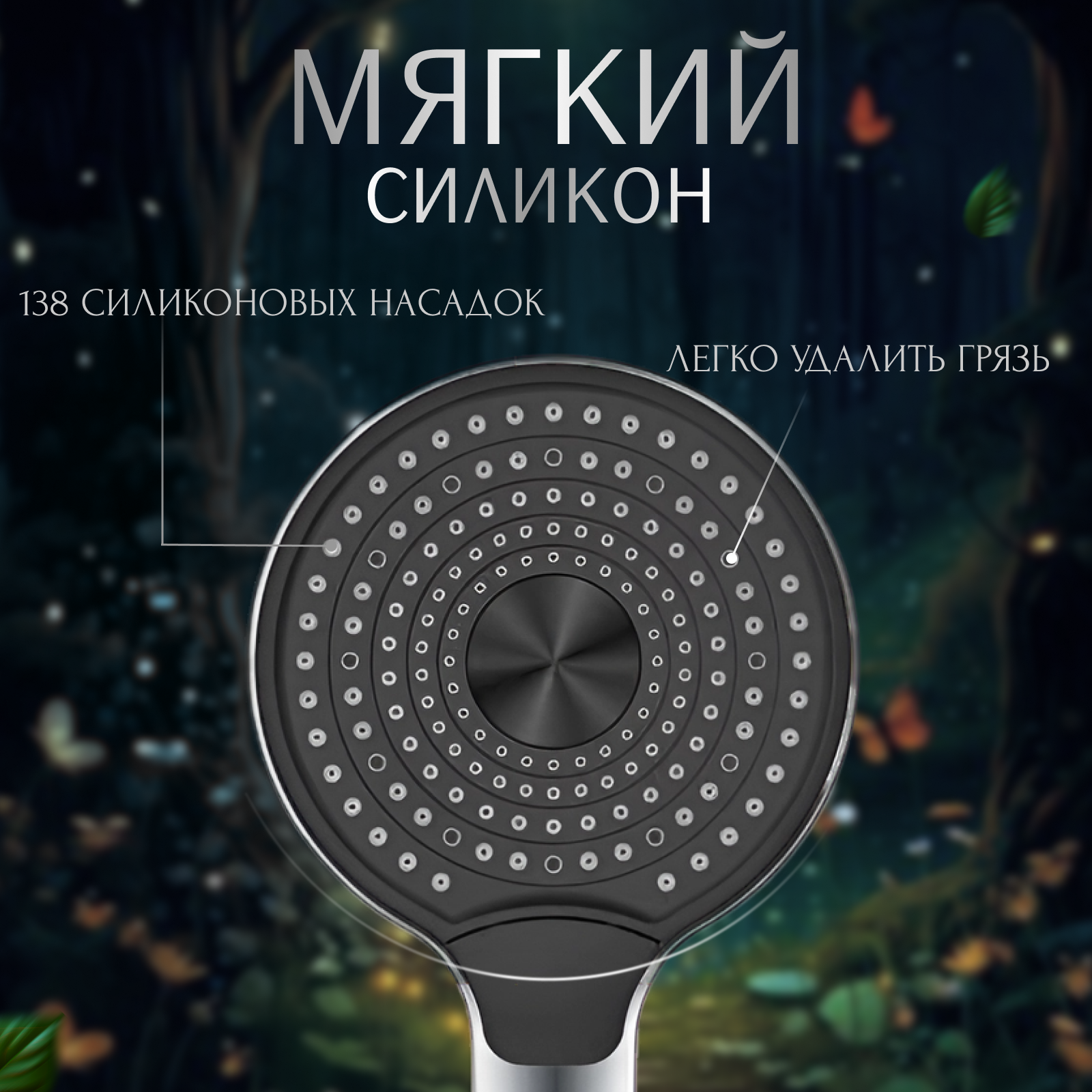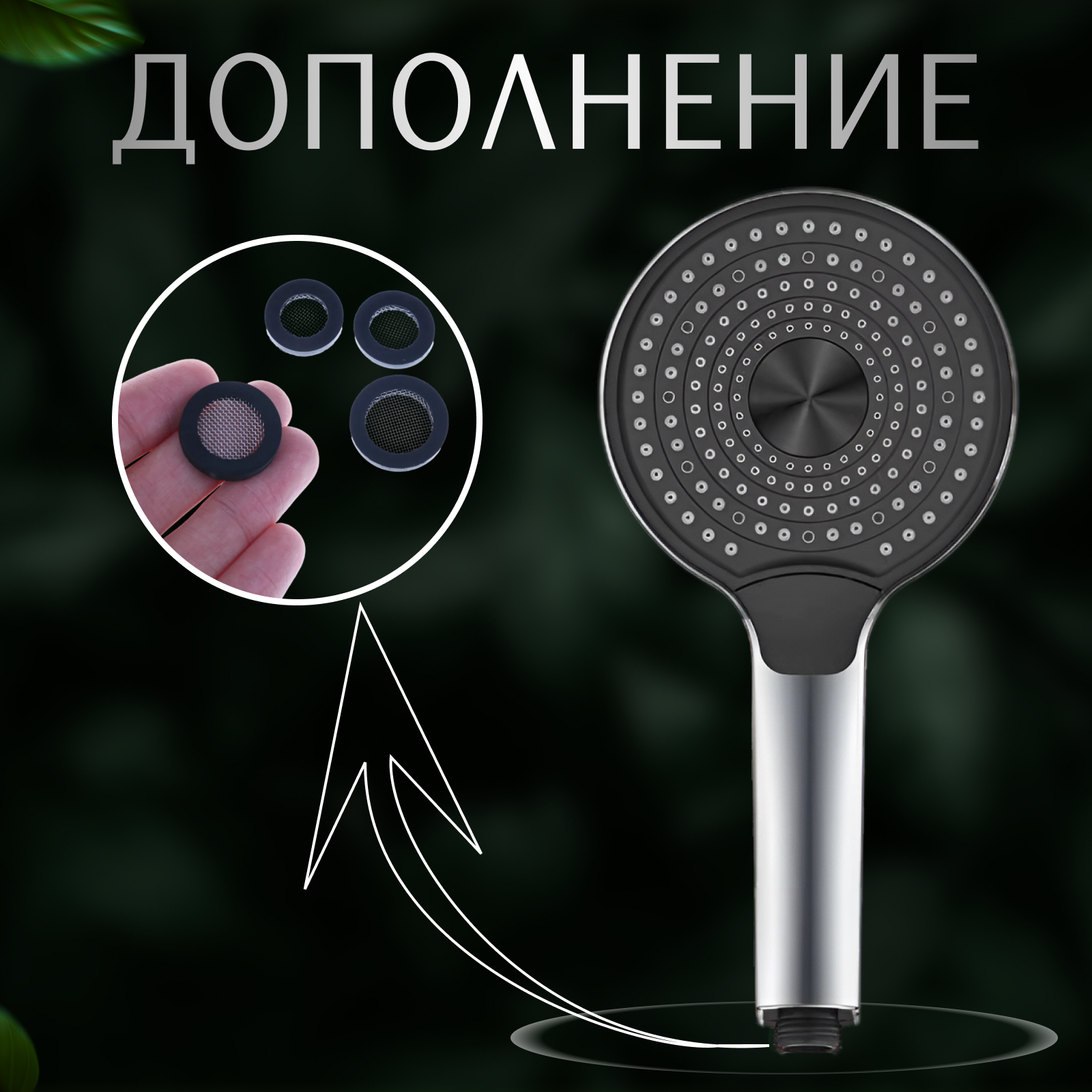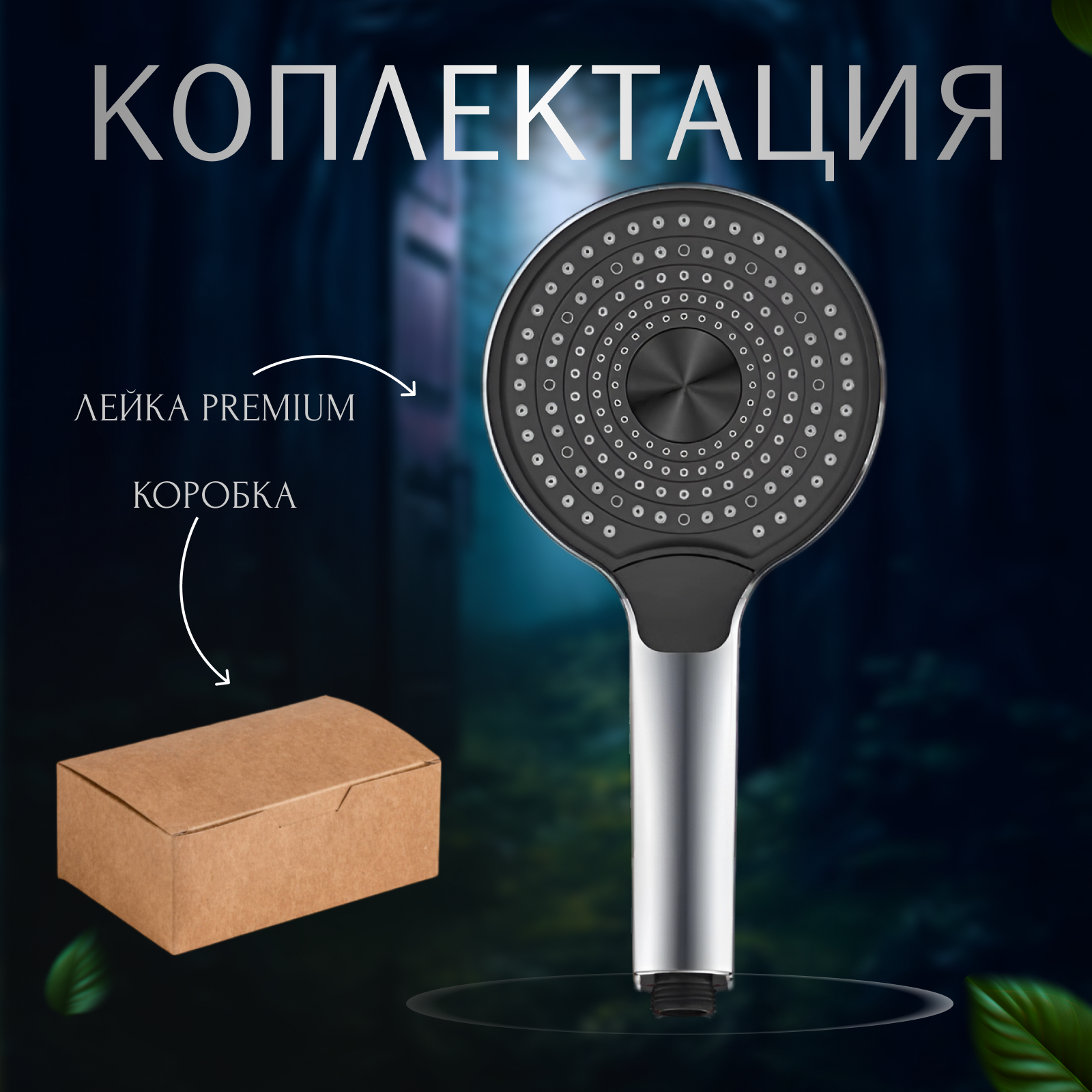 Лейка для душа круглая большая лейка душевая глянцевая водосберегающая черная ручка хром 3 режима