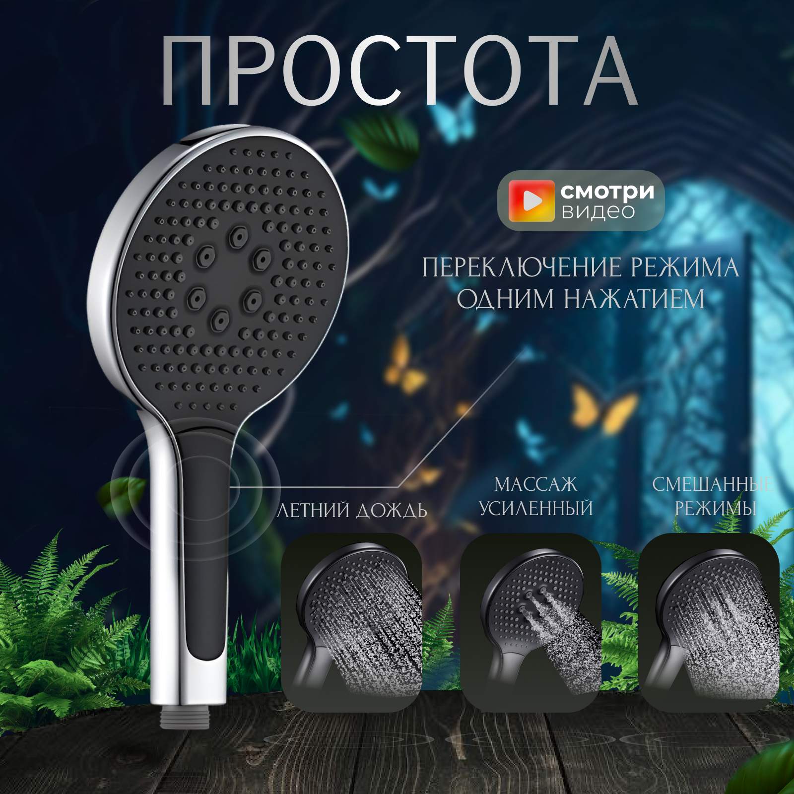 СохранитьЛейка для душа круглая большая лейка душевая глянцевая водосберегающая черная ручка хром 3 режима интересное:
