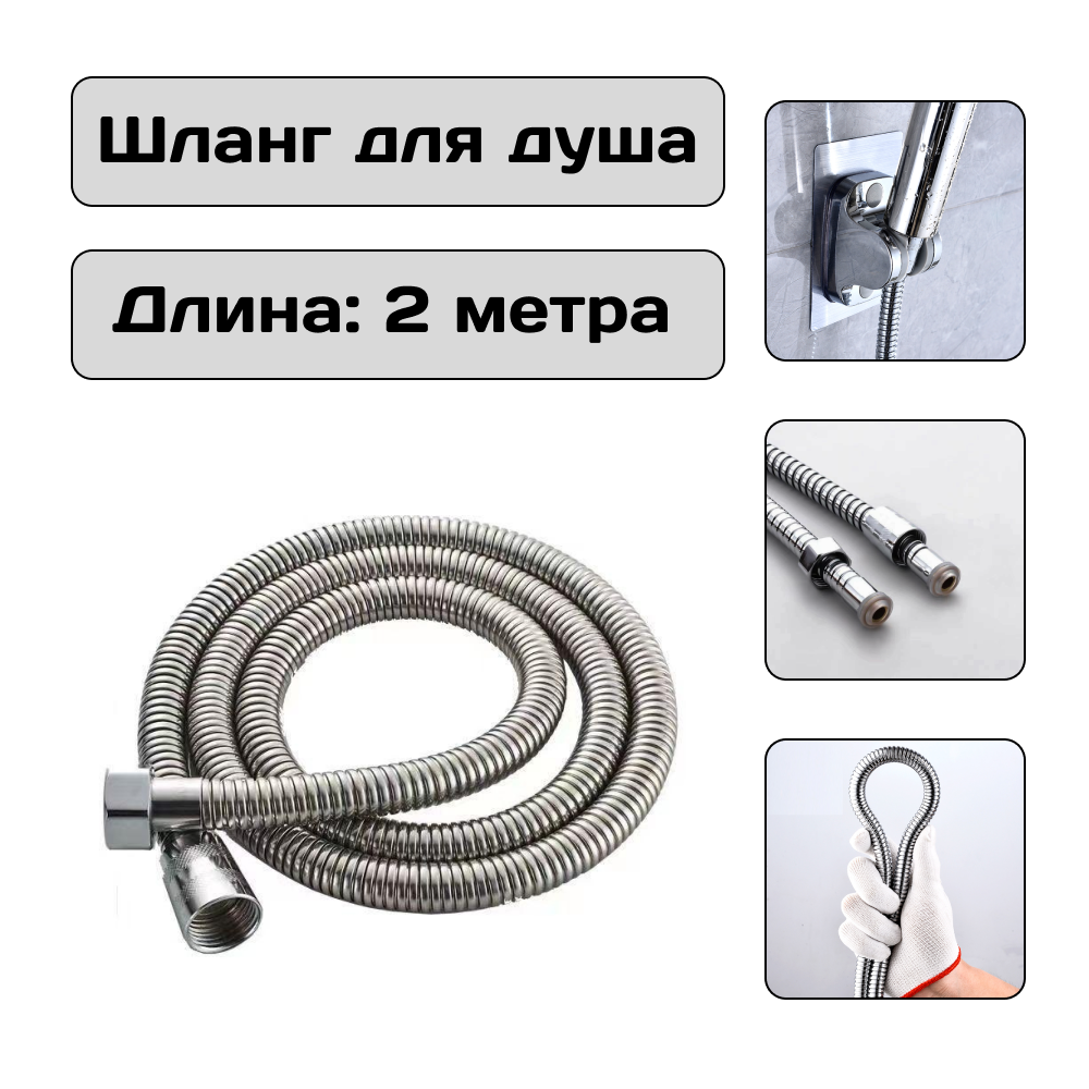 Шланг для душа 200 см. хромированный, для ванн и душевых кабин, усиленный интересное: