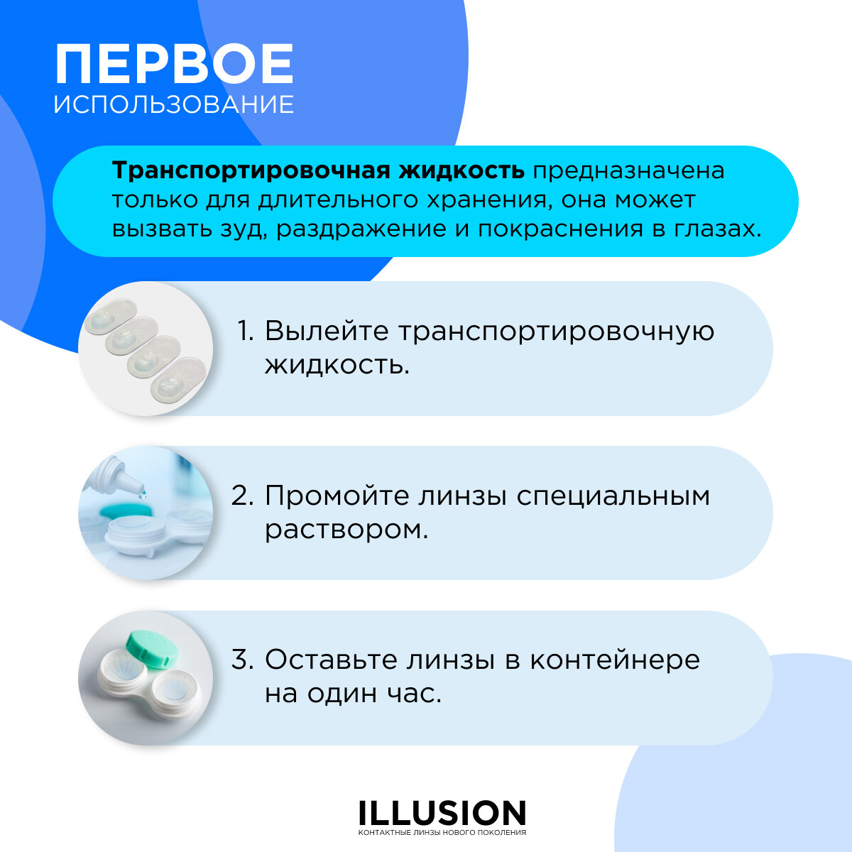 Тестовый набор ILLUSION (Clear квартальные 2 шт., Раствор 125 мл., контейнер)