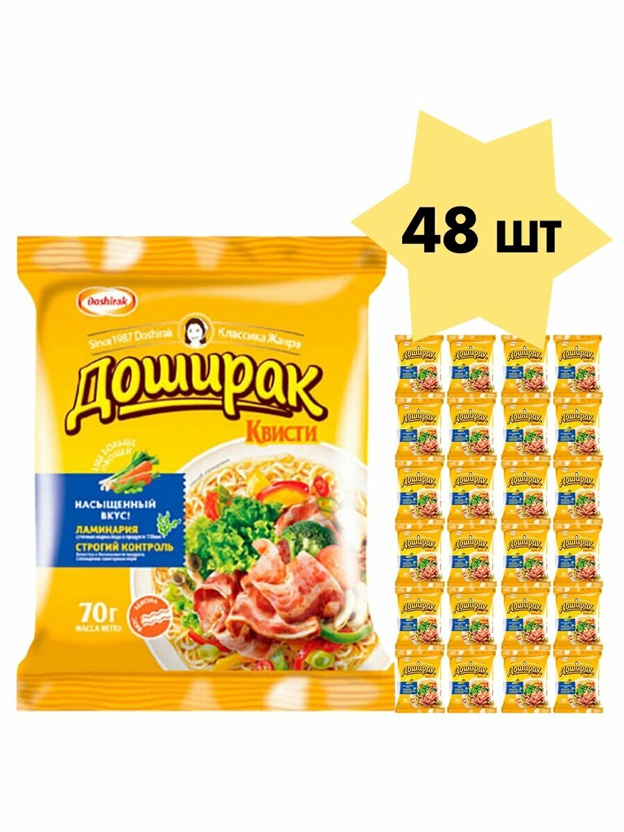Купить Лапша быстрого приготовления "Доширак Квисти" Бекон 70 г х 48 шт. / Doshirak / со вкусом Бекон
